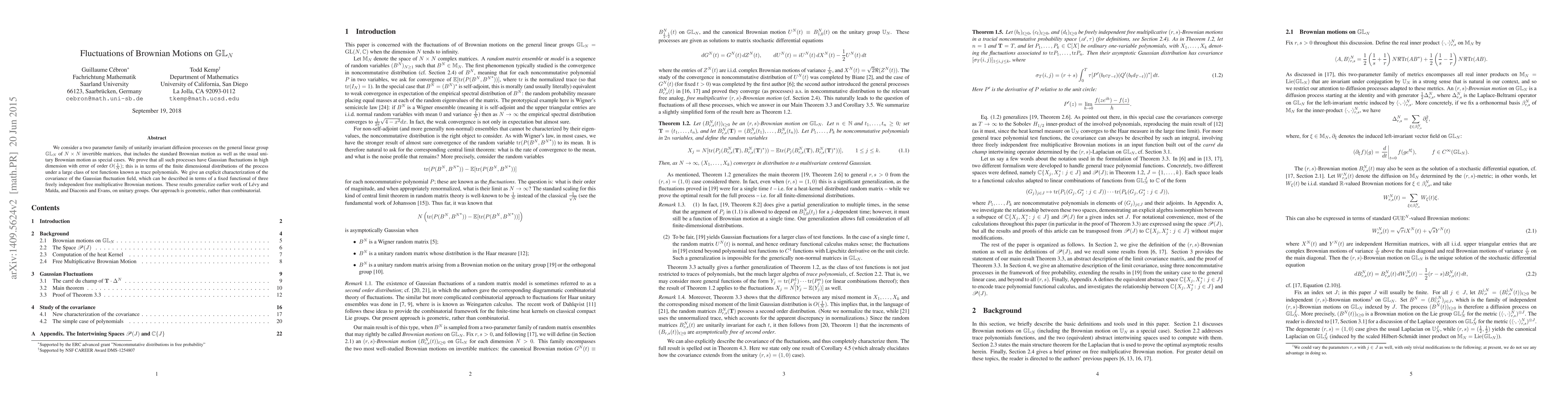 We consider a two parameter family of unitarily invariant diffusion processes on the general linear group $\mathbb{GL}_N$ of $N\times N$ invertible matrices, that includes the standard Brownian motion as well as the usual unitary Brownian motion as special cases. We prove that all such processes have Gaussian fluctuations in high dimension with error of order $O(1/N)$; this is in terms of the finite dimensional distributions of the process under a large class of test functions known as trace polynomials. We give an explicit characterization of the covariance of the Gaussian fluctuation field, which can be described in terms of a fixed functional of three freely independent free multiplicative Brownian motions. These results generalize earlier work of L\'evy and Ma\"ida, and Diaconis and Evans, on unitary groups. Our approach is geometric, rather than combinatorial.