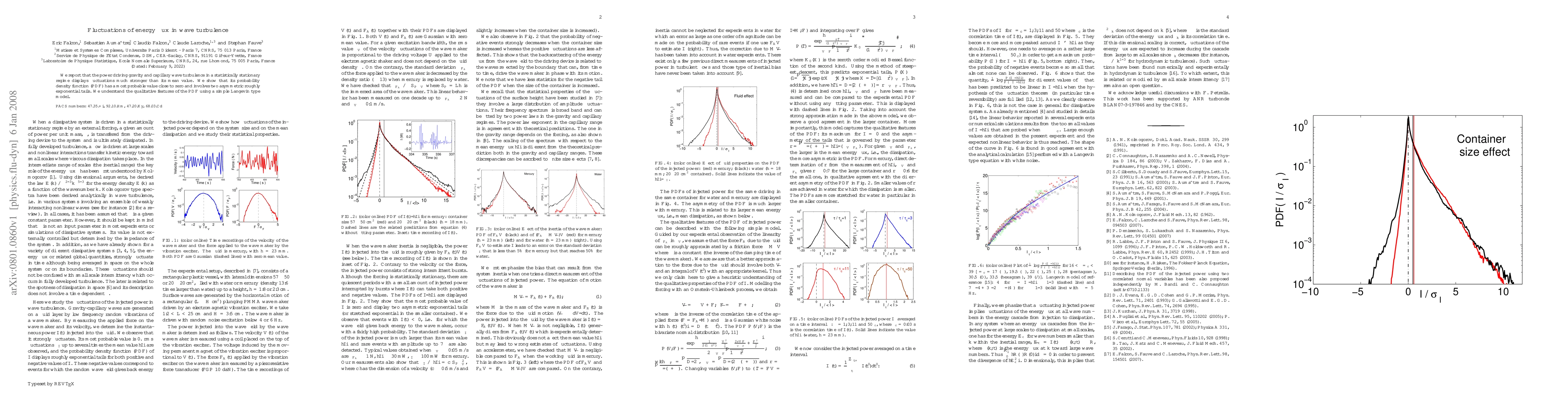 Wave turbulence energy flux shows stronger fluctuations than its mean value, with a probability density function having two exponential tails. This suggests that the driving power is highly variable and has a low most probable value close to zero.