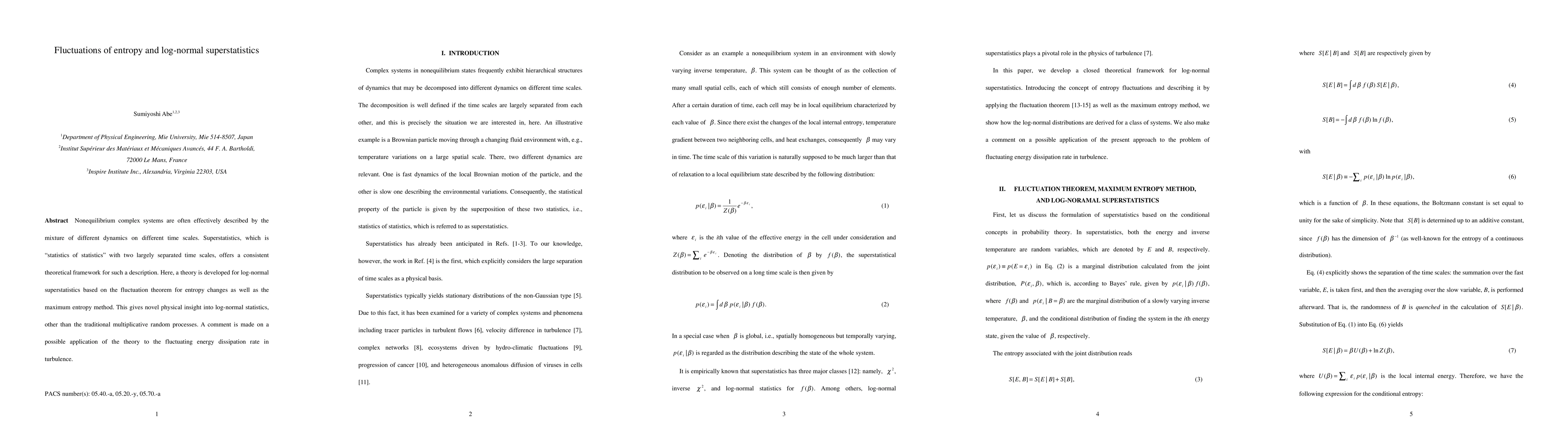 This paper develops a theory for log-normal superstatistics, providing a framework for describing nonequilibrium complex systems through entropy fluctuations. The approach uses the fluctuation theorem and maximum entropy method, offering new insights into log-normal statistics beyond traditional multiplicative processes, with potential applications to energy dissipation in turbulence.