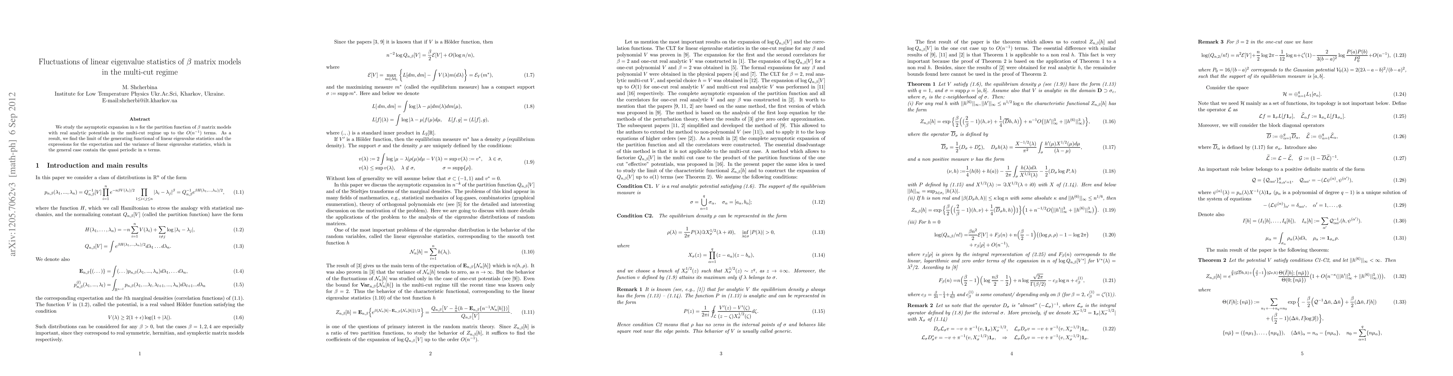 This paper investigates the asymptotic behavior of $\beta$ matrix models in the multi-cut regime, deriving the $O(n^{-1})$ terms of the partition function's expansion. It finds the limit of the generating functional for linear eigenvalue statistics and provides expressions for their expectation and variance, which include quasi-periodic terms in $n$.