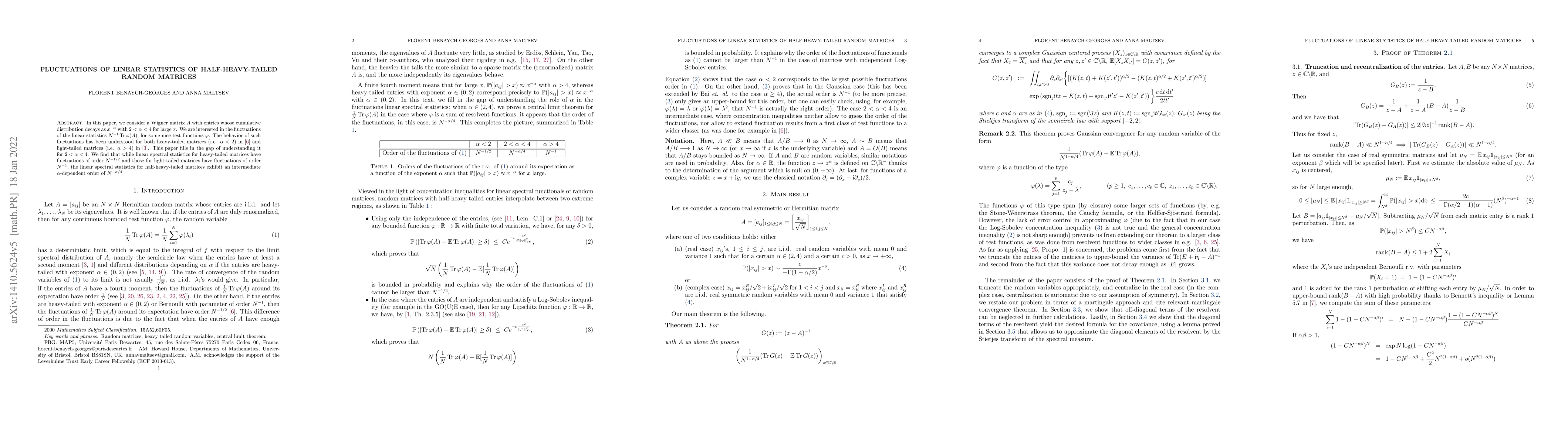 We consider a Wigner matrix $A$ with entries tail decaying as $x^{-\alpha}$ with $2<\alpha<4$ for large $x$ and study fluctuations of linear statistics $N^{-1}\operatorname{Tr}\varphi(A)$. The behavior of such fluctuations has been understood for both heavy-tailed matrices (i.e. $\alpha < 2$) and light-tailed matrices (i.e. $\alpha > 4$). This paper fills in the gap of understanding for $2<\alpha<4$. We find that while linear spectral statistics for heavy-tailed matrices have fluctuations of order $N^{-1/2}$ and those for light-tailed matrices have fluctuations of order $N^{-1}$, the linear spectral statistics for half-heavy-tailed matrices exhibit an intermediate $\alpha$-dependent order of $N^{-\alpha/4}$.