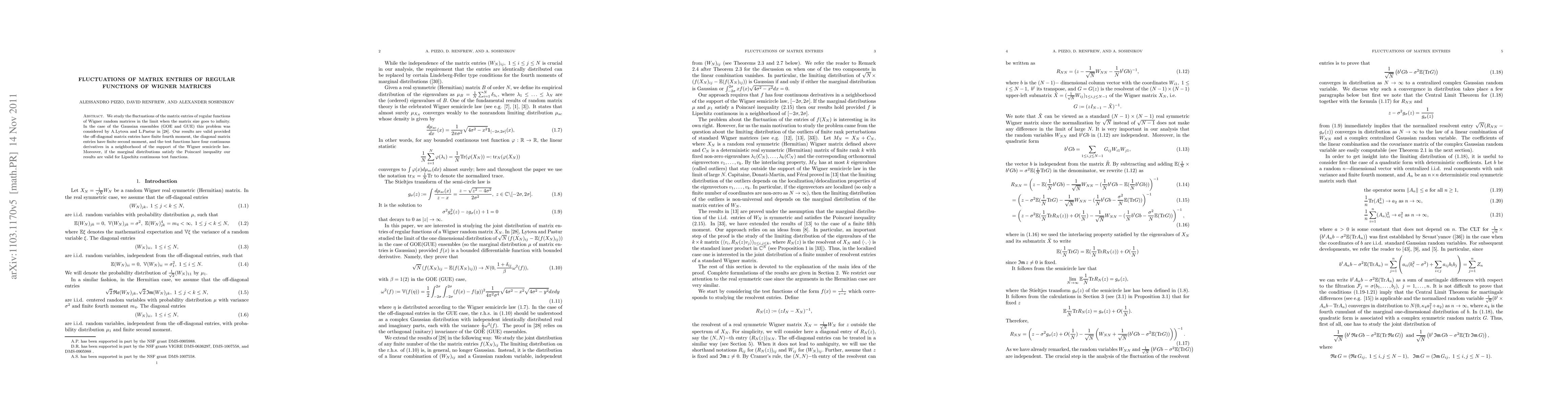 This paper investigates the fluctuations of matrix entries of regular functions applied to Wigner matrices as the matrix size approaches infinity. The study extends previous results by Lytova and Pastur for Gaussian ensembles, focusing on conditions where off-diagonal entries have finite fourth moments, diagonal entries have finite second moments, and test functions are four times continuously differentiable.