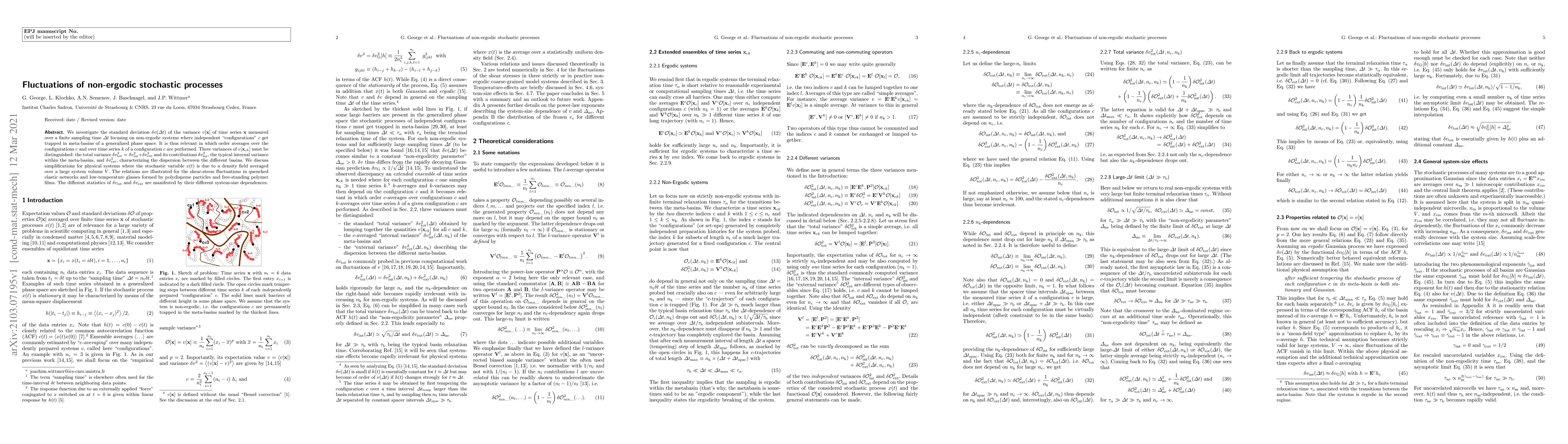 We investigate the standard deviation $\delta v(\tsamp)$ of the variance $v[\xbf]$ of time series $\xbf$ measured over a finite sampling time $\tsamp$ focusing on non-ergodic systems where independent "configurations" $c$ get trapped in meta-basins of a generalized phase space. It is thus relevant in which order averages over the configurations $c$ and over time series $k$ of a configuration $c$ are performed. Three variances of $v[\xbf_{ck}]$ must be distinguished: the total variance $\dvtot = \dvint + \dvext$ and its contributions $\dvint$, the typical internal variance within the meta-basins, and $\dvext$, characterizing the dispersion between the different basins. We discuss simplifications for physical systems where the stochastic variable $x(t)$ is due to a density field averaged over a large system volume $V$. The relations are illustrated for the shear-stress fluctuations in quenched elastic networks and low-temperature glasses formed by polydisperse particles and free-standing polymer films. The different statistics of $\svint$ and $\svext$ are manifested by their different system-size dependence