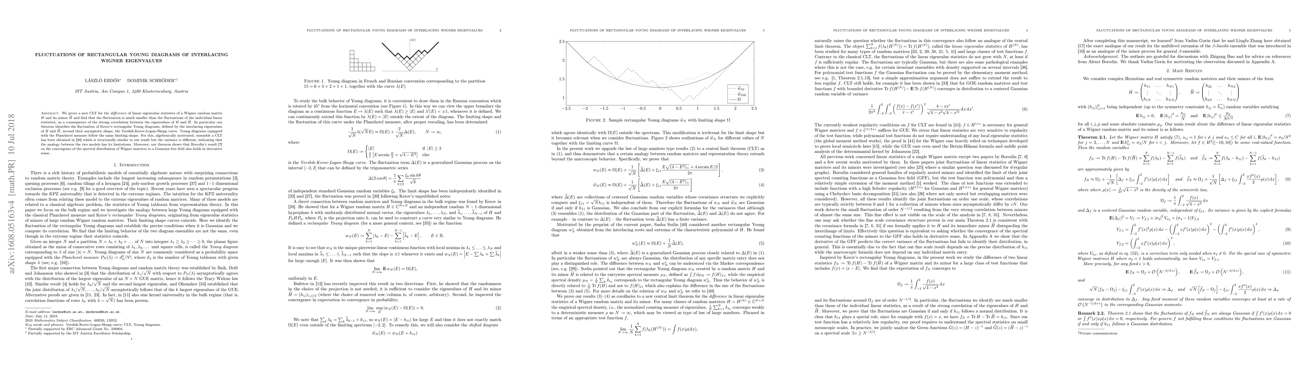 The paper presents a novel CLT for the difference of linear statistics of a Wigner random matrix and its minor, identifying the fluctuation of Kerov's rectangular Young diagrams and their connection to the Vershik-Kerov-Logan-Shepp curve.