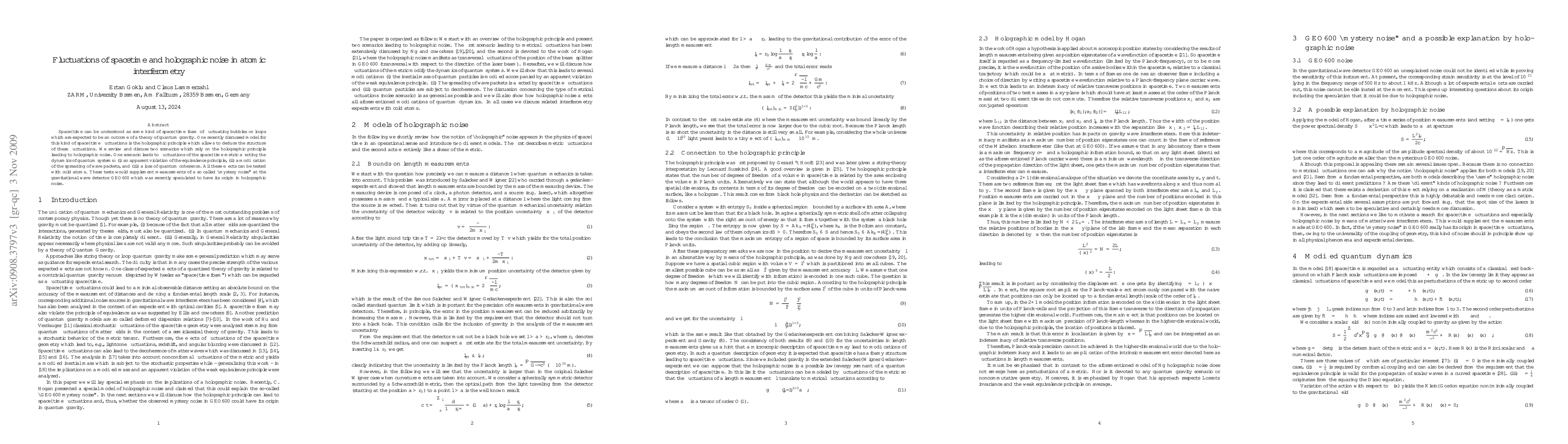 Space--time can be understood as some kind of space--time foam of fluctuating bubbles or loops which are expected to be an outcome of a theory of quantum gravity. One recently discussed model for this kind of space--time fluctuations is the holographic principle which allows to deduce the structure of these fluctuations. We review and discuss two scenarios which rely on the holographic principle leading to holographic noise. One scenario leads to fluctuations of the space--time metric affecting the dynamics of quantum systems: (i) an apparent violation of the equivalence principle, (ii) a modification of the spreading of wave packets, and (iii) a loss of quantum coherence. All these effects can be tested with cold atoms. These tests would supplement measurements of a so called ``mystery noise'' at the gravitational wave detector GEO600 which was recently speculated to have its origin in holographic noise.