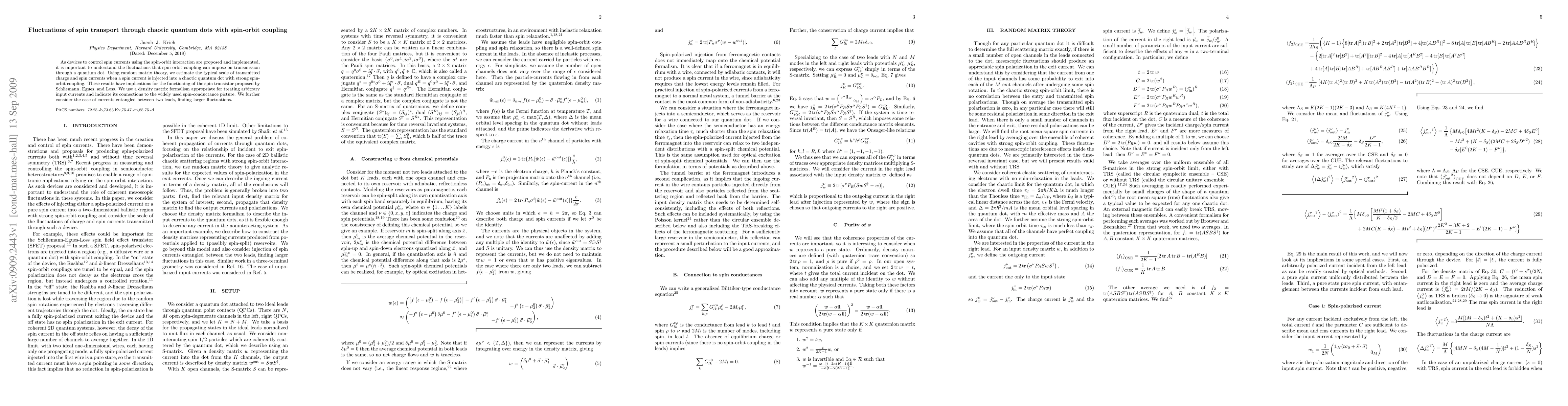 This paper explores spin transport fluctuations in chaotic quantum dots with strong spin-orbit coupling, using random matrix theory to estimate charge and spin current transmission scales. It highlights implications for spin transistor functionality and finds larger fluctuations for entangled currents between two leads.