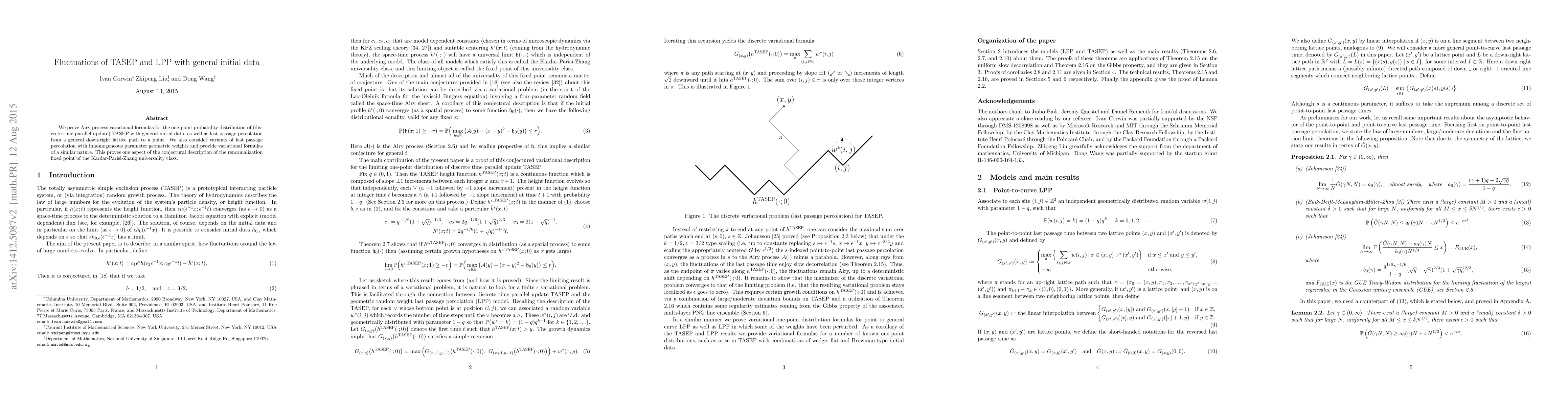 This paper establishes Airy process variational formulas for the one-point probability distribution of TASEP with general initial data and last passage percolation from a general lattice path to a point, supporting the conjectural description of the Kardar-Parisi-Zhang universality class's renormalization fixed point. It also extends these results to variants of last passage percolation with inhomogeneous geometric weights.