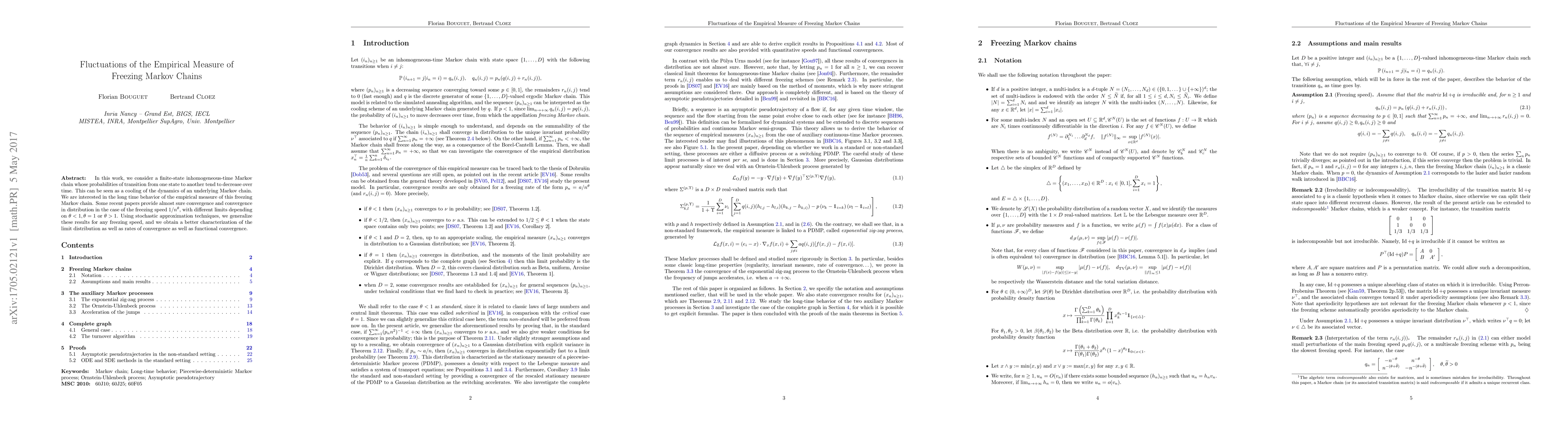 In this work, we consider a finite-state inhomogeneous-time Markov chain whose probabilities of transition from one state to another tend to decrease over time. This can be seen as a cooling of the dynamics of an underlying Markov chain. We are interested in the long time behavior of the empirical measure of this freezing Markov chain. Some recent papers provide almost sure convergence and convergence in distribution in the case of the freezing speed $n^{-\theta}$, with different limits depending on $\theta<1,\theta=1$ or $\theta>1$. Using stochastic approximation techniques, we generalize these results for any freezing speed, and we obtain a better characterization of the limit distribution as well as rates of convergence as well as functional convergence.