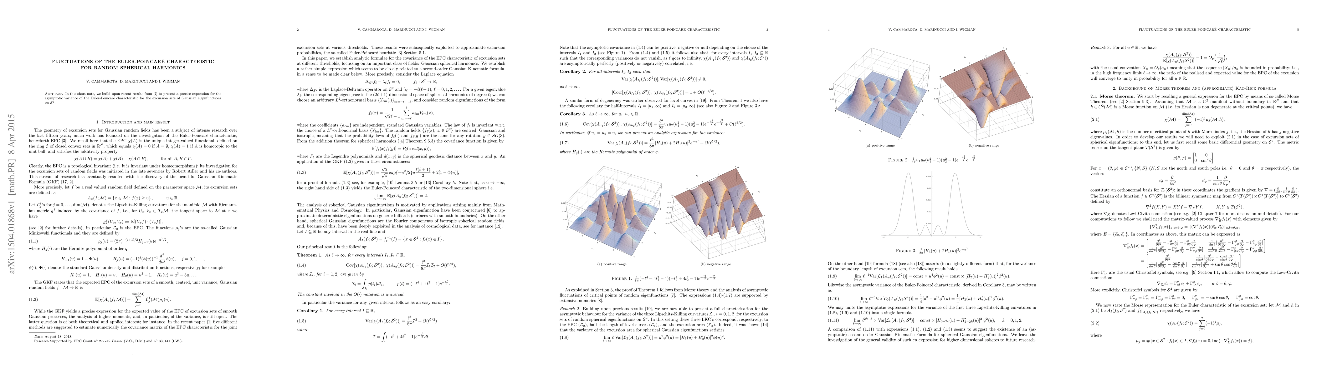 Summary: This paper derives an exact expression for the asymptotic variance of the Euler-Poincaré characteristic for excursion sets of Gaussian eigenfunctions on a sphere, building on recent advancements in the field. The findings provide deeper insights into the statistical properties of random spherical harmonics.