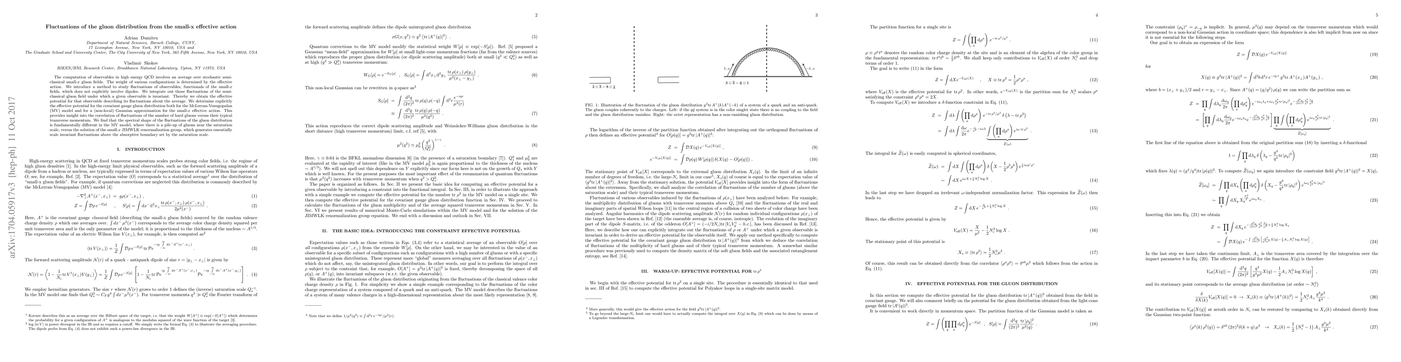 This research introduces a method to study fluctuations of high-energy QCD observables via the small-x effective action, without relying on dipoles. The effective potential for the covariant gauge gluon distribution is explicitly calculated for the MV model and a Gaussian approximation, revealing distinct spectral shapes of gluon fluctuations: a pile-up near the saturation scale in the MV model, contrasting with scale-invariant fluctuations above the saturation boundary in the small-x JIMWLK solution.