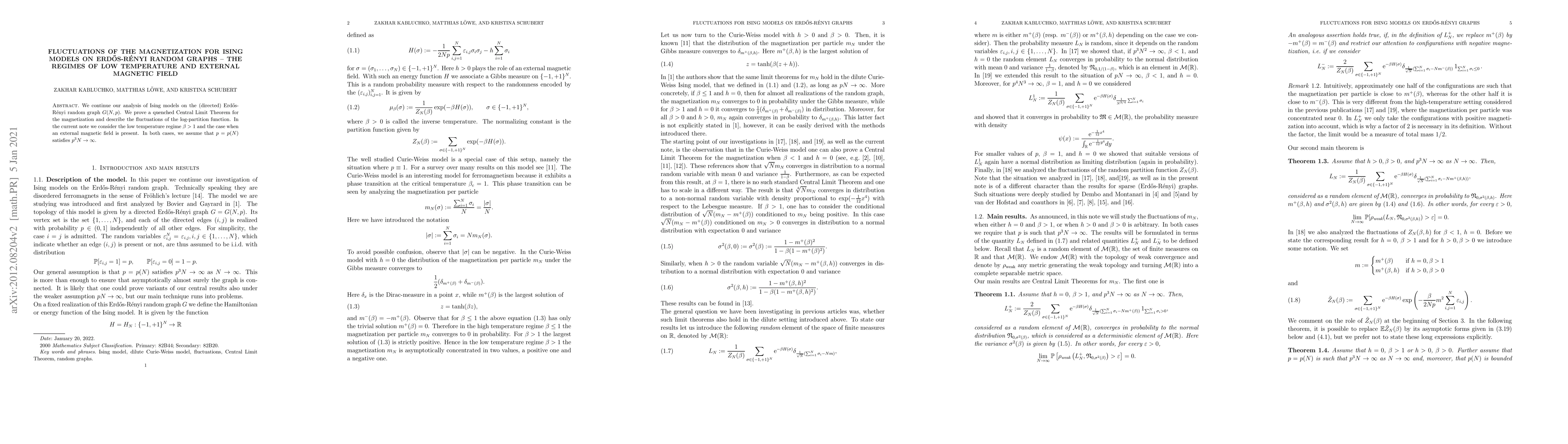 We continue our analysis of Ising models on the (directed) Erd\H{o}s-R\'enyi random graph $G(N,p)$. We prove a quenched Central Limit Theorem for the magnetization and describe the fluctuations of the log-partition function. In the current note we consider the low temperature regime $\beta>1$ and the case when an external magnetic field is present. In both cases, we assume that $p=p(N)$ satisfies $p^3N \to \infty$.