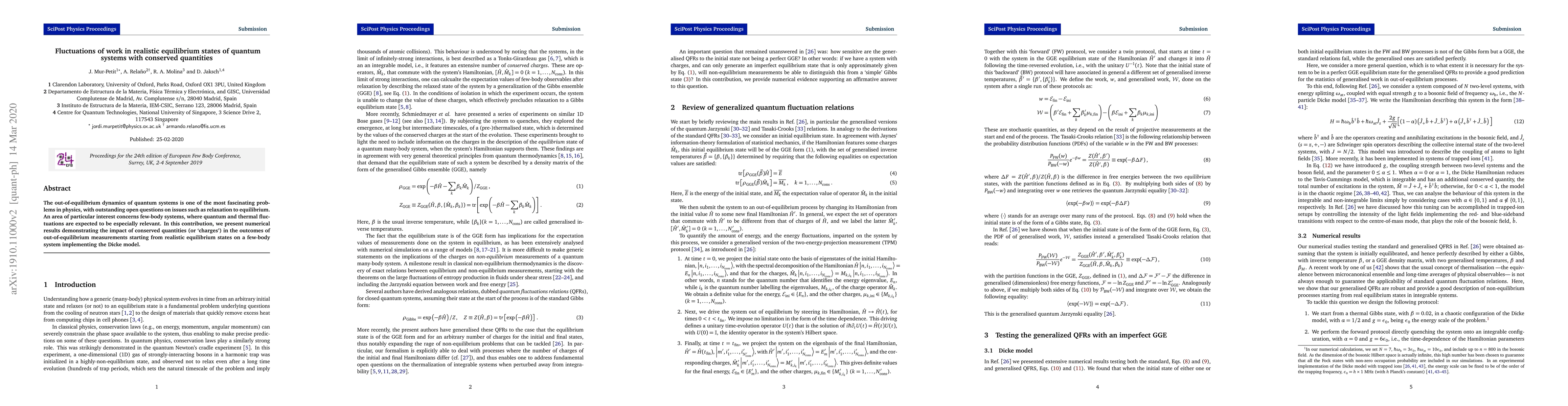 The out-of-equilibrium dynamics of quantum systems is one of the most fascinating problems in physics, with outstanding open questions on issues such as relaxation to equilibrium. An area of particular interest concerns few-body systems, where quantum and thermal fluctuations are expected to be especially relevant. In this contribution, we present numerical results demonstrating the impact of conserved quantities (or 'charges') in the outcomes of out-of-equilibrium measurements starting from realistic equilibrium states on a few-body system implementing the Dicke model.