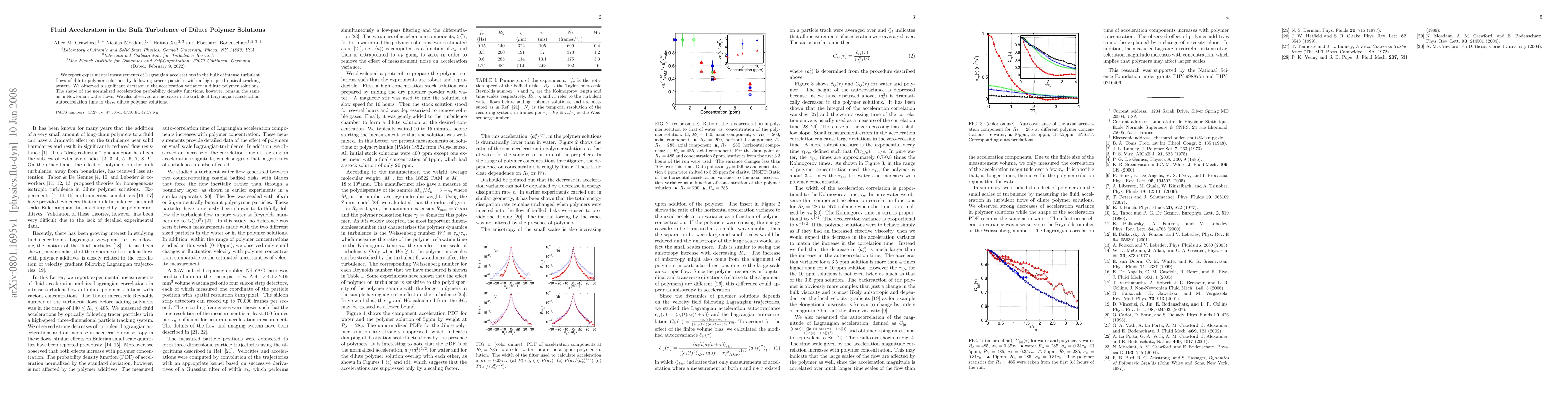 This study measures Lagrangian accelerations in turbulent flows of dilute polymer solutions using high-speed optical tracking, finding reduced acceleration variance but unchanged acceleration probability density function shapes compared to Newtonian water. The turbulent Lagrangian acceleration autocorrelation time also increases in polymer solutions.