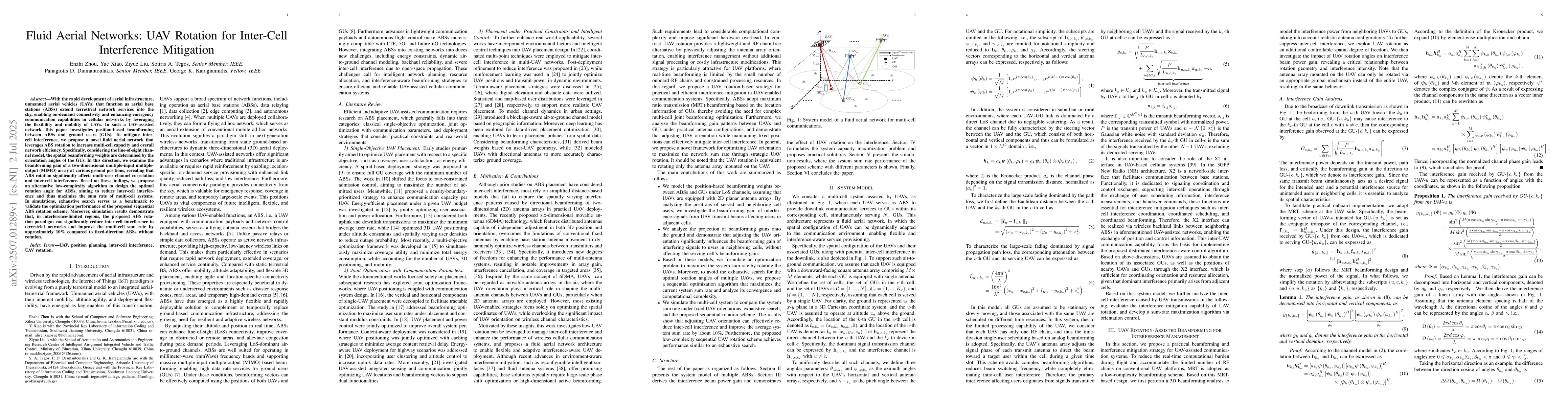 With the rapid development of aerial infrastructure, unmanned aerial vehicles (UAVs) that function as aerial base stations (ABSs) extend terrestrial network services into the sky, enabling on-demand connectivity and enhancing emergency communication capabilities in cellular networks by leveraging the flexibility and mobility of UAVs. In such a UAV-assisted network, this paper investigates position-based beamforming between ABSs and ground users (GUs). To mitigate inter-cell interference, we propose a novel fluid aerial network that leverages ABS rotation to increase multi-cell capacity and overall network efficiency. Specifically, considering the line-of-sight channel model, the spatial beamforming weights are determined by the orientation angles of the GUs. In this direction, we examine the beamforming gain of a two-dimensional multiple-input multiple-output (MIMO) array at various ground positions, revealing that ABS rotation significantly affects multi-user channel correlation and inter-cell interference. Based on these findings, we propose an alternative low-complexity algorithm to design the optimal rotation angle for ABSs, aiming to reduce inter-cell interference and thus maximize the sum rate of multi-cell systems. In simulations, exhaustive search serves as a benchmark to validate the optimization performance of the proposed sequential ABS rotation scheme. Moreover, simulation results demonstrate that, in interference-limited regions, the proposed ABS rotation paradigm can significantly reduce inter-cell interference in terrestrial networks and improve the multi-cell sum rate by approximately 10\% compared to fixed-direction ABSs without rotation.