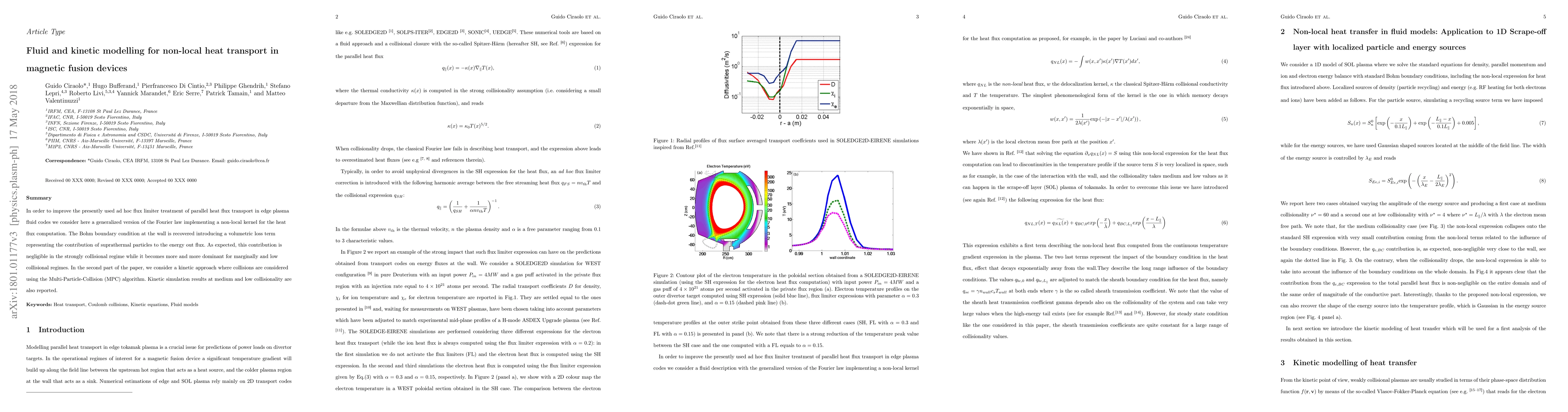 The study enhances heat transport modeling in fusion edge plasmas by incorporating non-local and kinetic effects, showing that suprathermal particles significantly influence energy loss in low-collisional regimes. It combines advanced fluid and kinetic simulations to improve understanding of heat flux behavior near reactor walls.