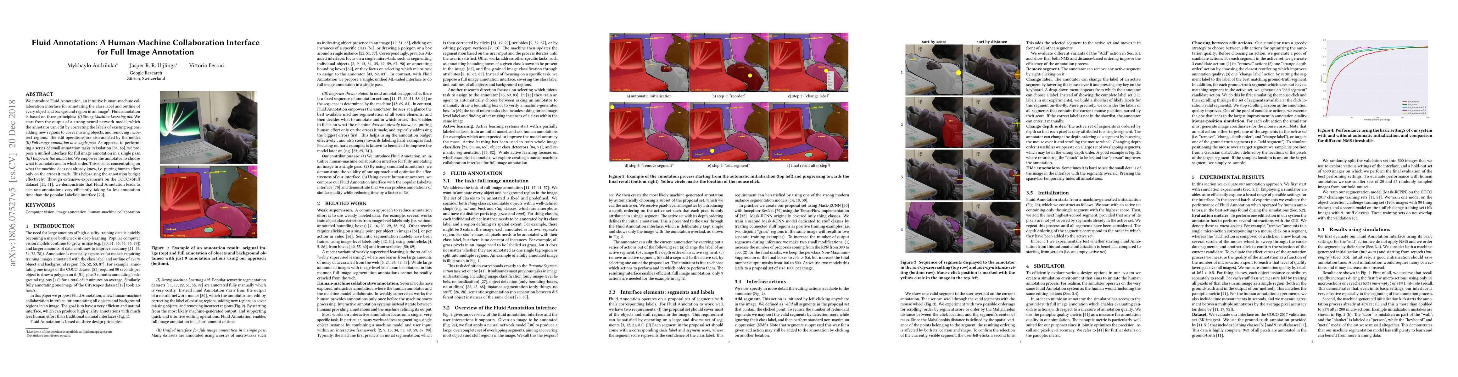 Fluid Annotation is a human-machine collaboration tool for efficient full image annotation, leveraging machine learning to assist in editing and prioritizing corrections. It enables full image annotation in a single pass and reduces annotation time by three times compared to traditional methods.
