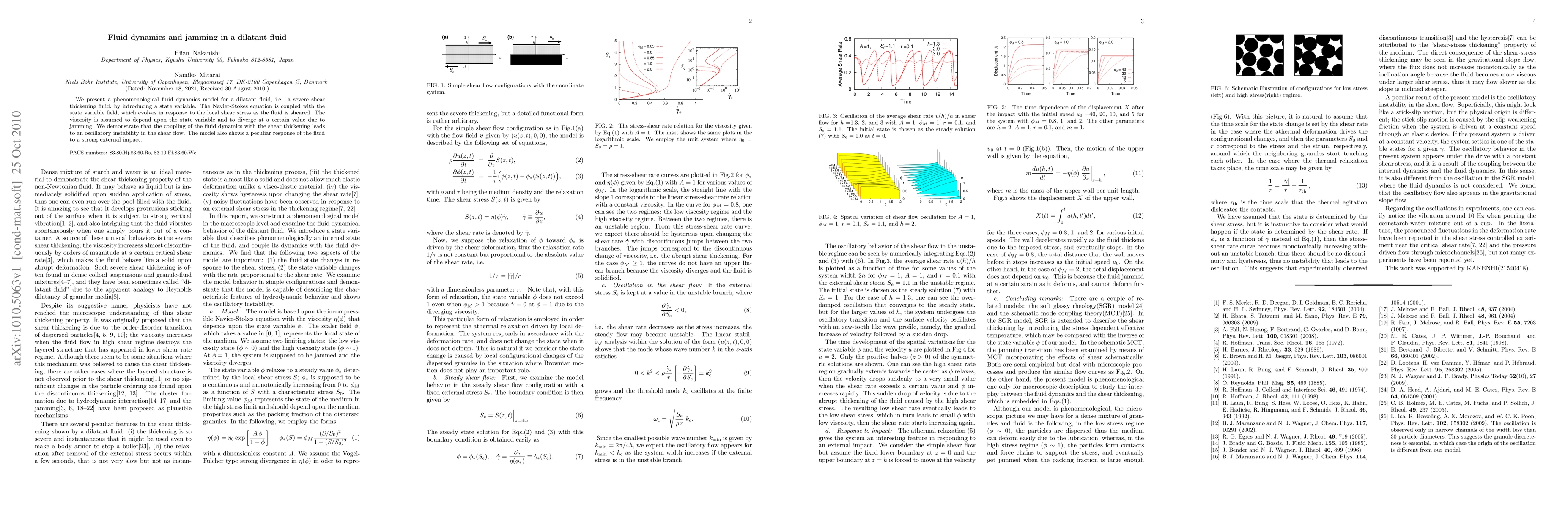 This paper develops a fluid dynamics model for dilatant fluids, incorporating a state variable that captures shear thickening behavior. The model reveals an oscillatory instability in shear flow and an unusual response to strong impacts due to the coupling between fluid dynamics and jamming.