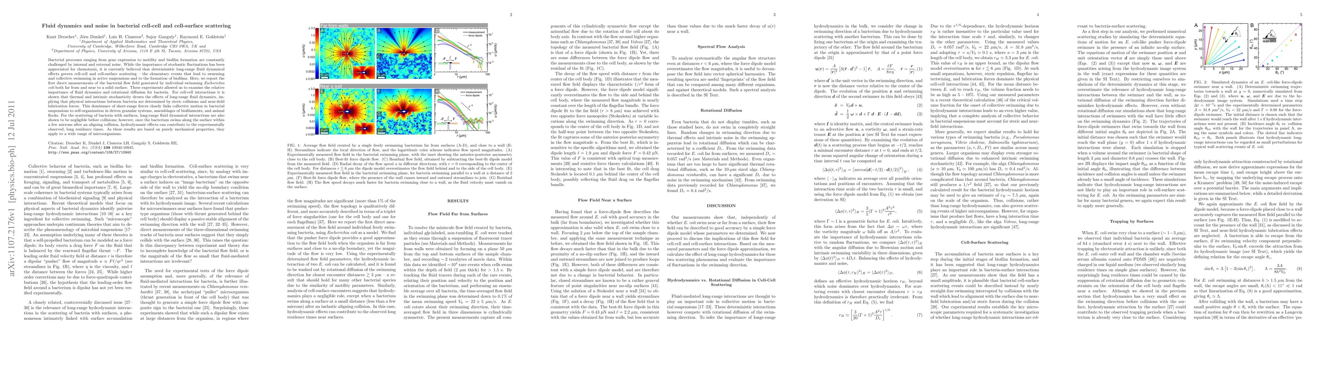This study investigates the fluid dynamics and noise affecting bacterial cell-cell and cell-surface scattering, revealing that stochasticity overshadows long-range fluid dynamics in cell interactions. For surface scattering, hydrodynamic effects become significant only after aligning collisions, influencing long residence times.
