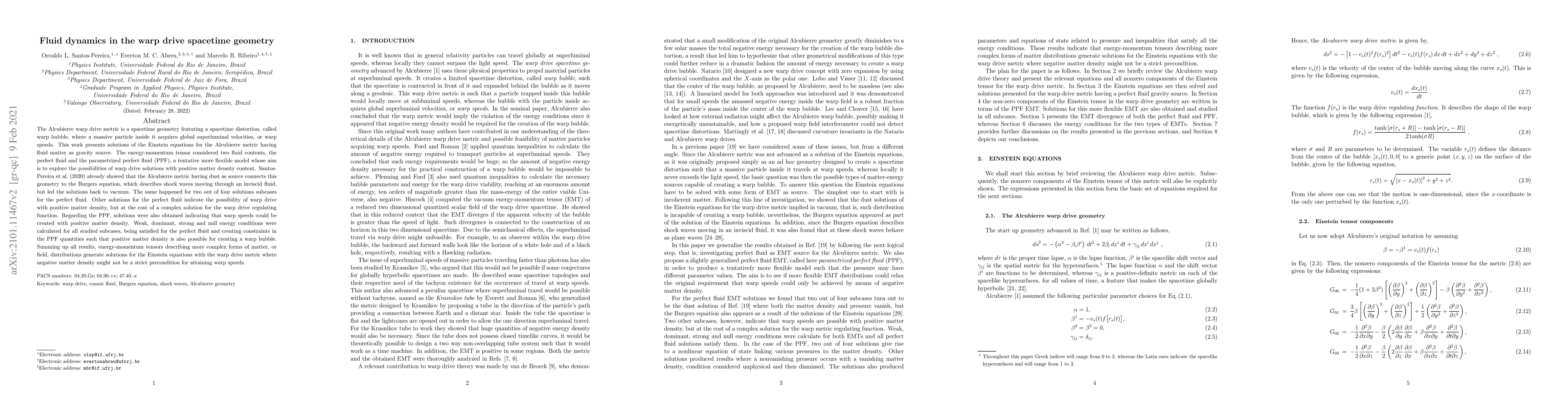 This paper explores the Alcubierre warp drive metric with fluid matter as the gravitational source, finding solutions for both perfect and parametrized perfect fluids. It concludes that warp speeds can be achieved with positive matter density, challenging the necessity of negative matter, and discusses energy conditions for these solutions.