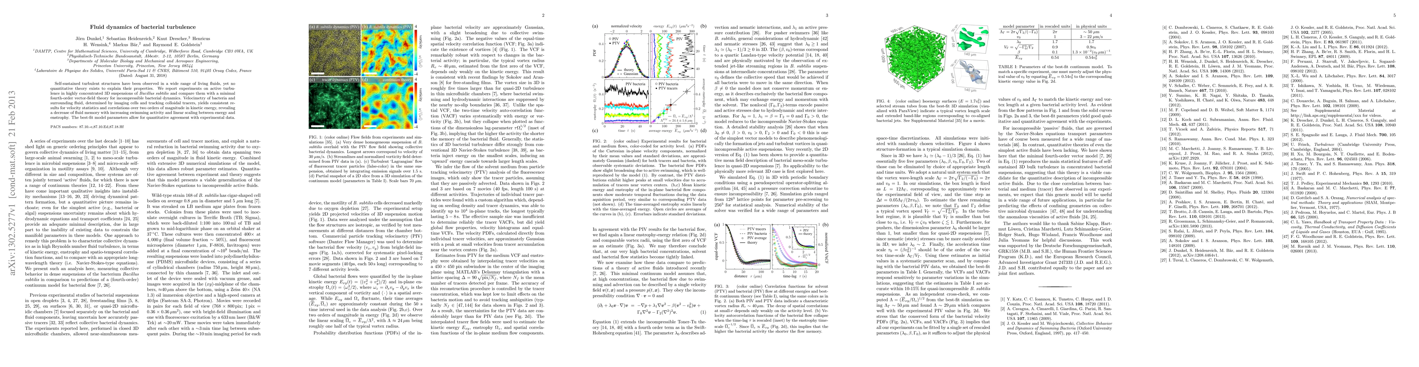 Self-sustained turbulent structures have been observed in a wide range of living fluids, yet no quantitative theory exists to explain their properties. We report experiments on active turbulence in highly concentrated 3D suspensions of Bacillus subtilis and compare them with a minimal fourth-order vector-field theory for incompressible bacterial dynamics. Velocimetry of bacteria and surrounding fluid, determined by imaging cells and tracking colloidal tracers, yields consistent results for velocity statistics and correlations over two orders of magnitude in kinetic energy, revealing a decrease of fluid memory with increasing swimming activity and linear scaling between energy and enstrophy. The best-fit model parameters allow for quantitative agreement with experimental data.