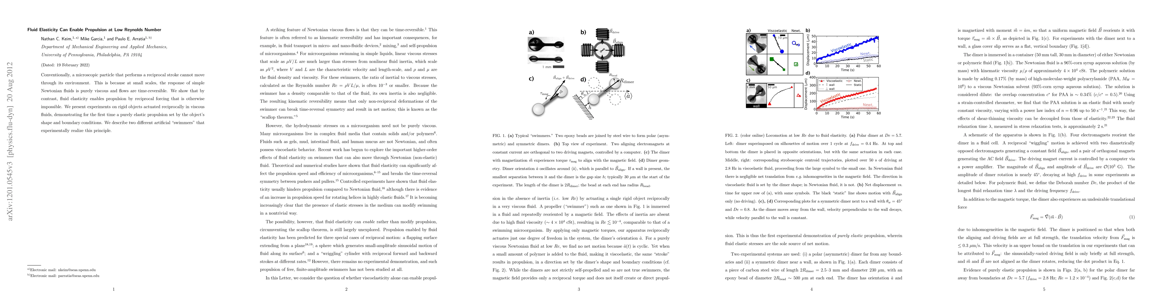 This research demonstrates that fluid elasticity allows propulsion in microscopic particles through reciprocal strokes, which is typically impossible due to viscous fluid behavior. Experiments on rigid objects moving in viscous fluids showcase two novel 'swimmers' that propel via this elastic principle.