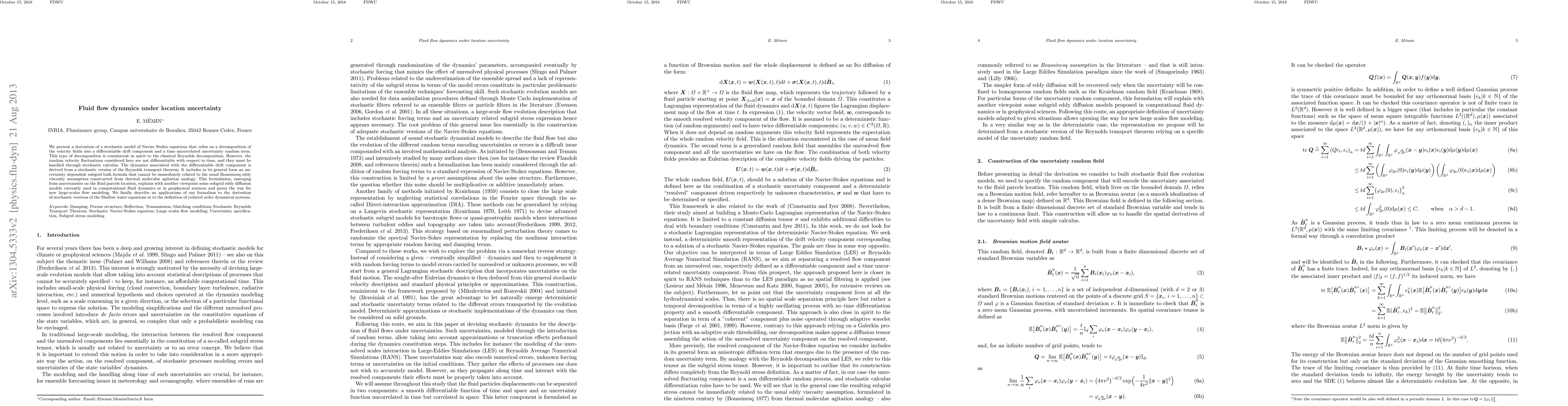Researchers developed a new stochastic model for fluid flow dynamics that accounts for location uncertainty, offering an alternative perspective on subgrid eddy diffusion models used in CFD and geophysical sciences.