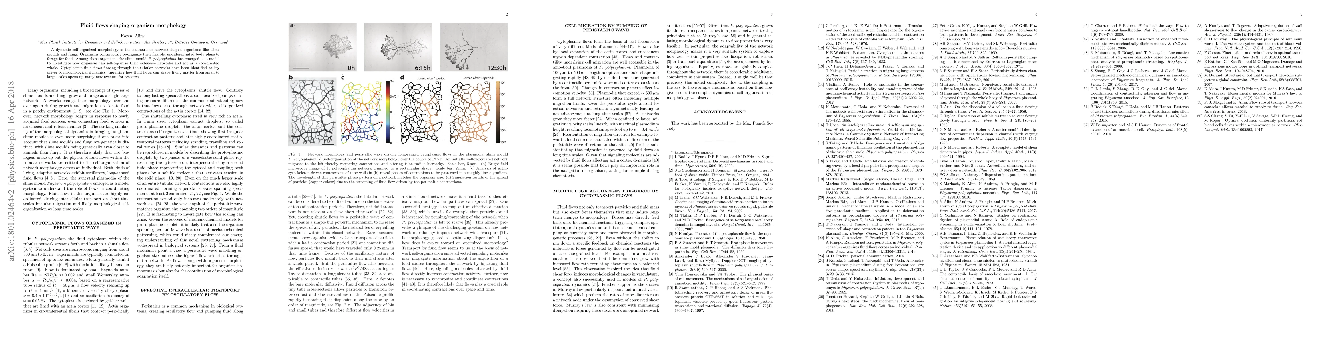 A dynamic self-organized morphology is the hallmark of network-shaped organisms like slime moulds and fungi. Organisms continuously re-organize their flexible, undifferentiated body plans to forage for food. Among these organisms the slime mould Physarum polycephalum has emerged as a model to investigate how organism can self-organize their extensive networks and act as a coordinated whole. Cytoplasmic fluid flows flowing through the tubular networks have been identified as key driver of morphological dynamics. Inquiring how fluid flows can shape living matter from small to large scales opens up many new avenues for research.