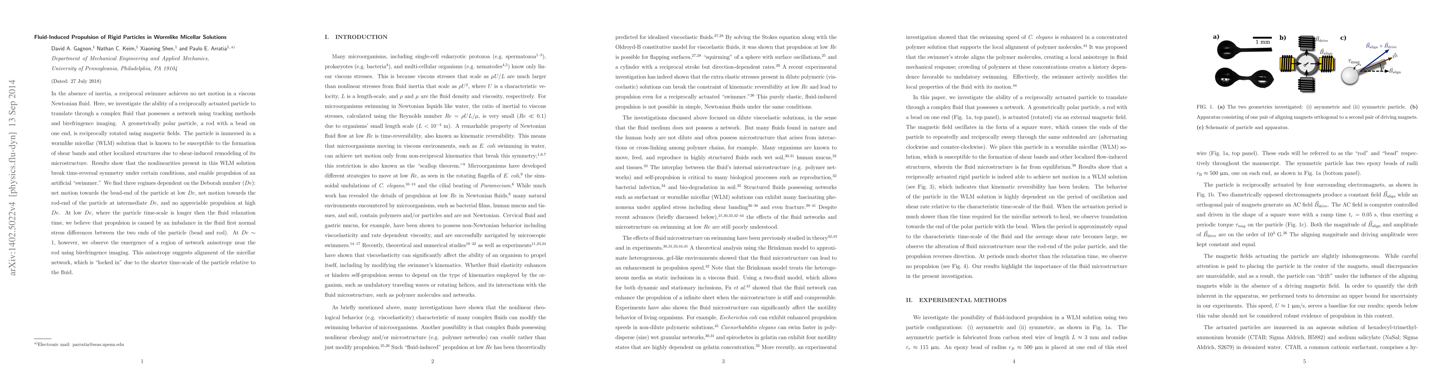 A particle with a magnetic actuator propelled through a complex fluid, known as wormlike micellar solution, in three distinct regimes: motion towards the bead-end at low Deborah number, towards the rod-end at intermediate De, and no propulsion at high De.