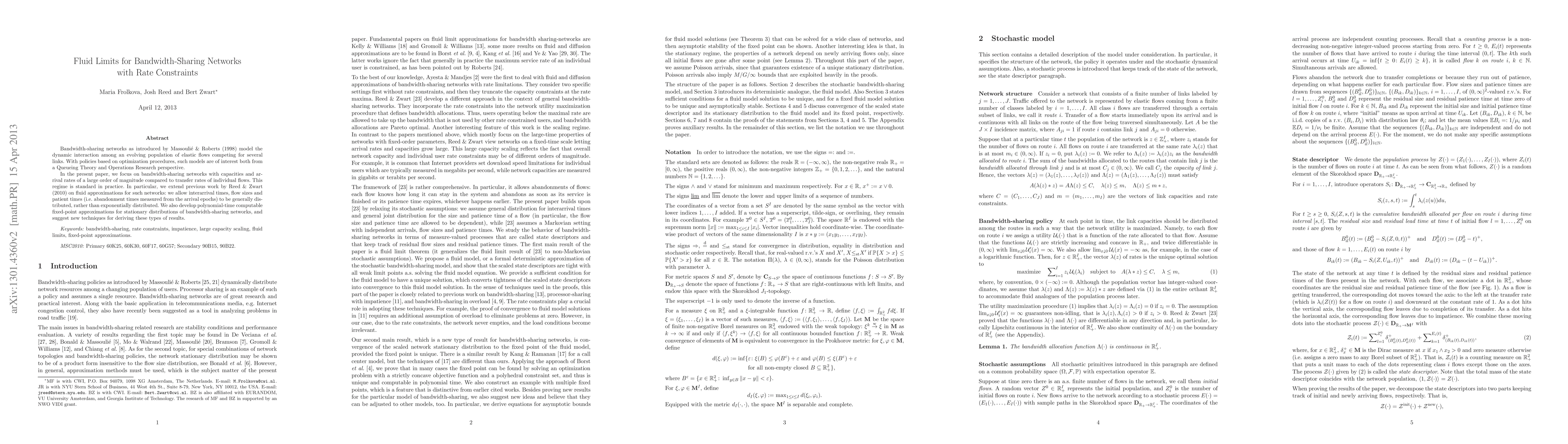 This paper extends fluid approximations for bandwidth-sharing networks, allowing for generally distributed interarrival times and flow sizes, and develops polynomial-time computable fixed-point approximations for their stationary distributions, offering new techniques for such derivations.