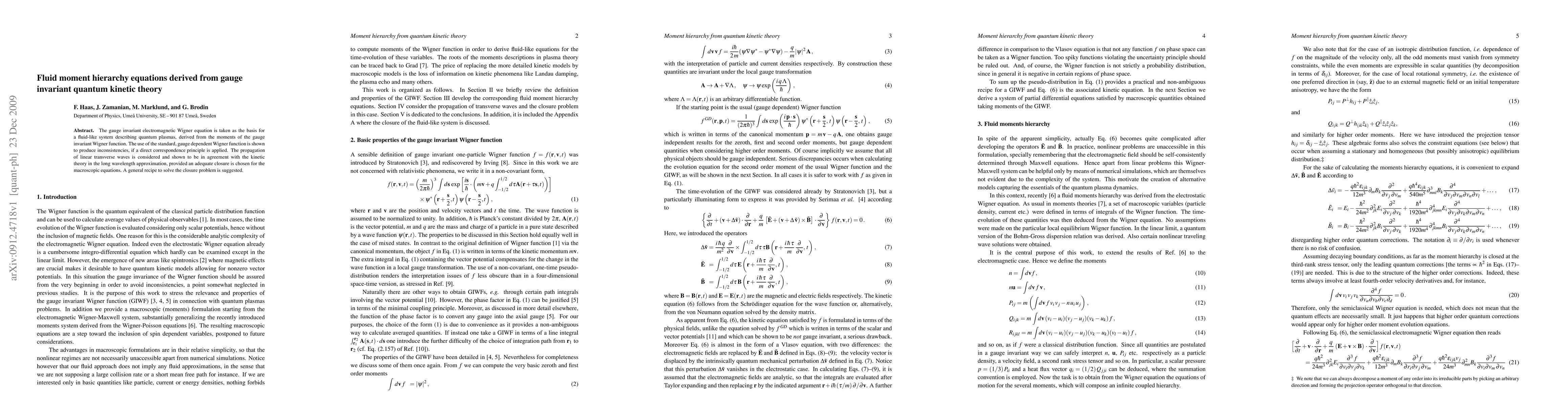 This paper derives fluid moment hierarchy equations from the gauge invariant electromagnetic Wigner equation for quantum plasmas, demonstrating that the gauge dependent Wigner function leads to inconsistencies. It proposes a method to solve the closure problem for macroscopic equations and confirms wave propagation agreement with kinetic theory in the long wavelength limit.