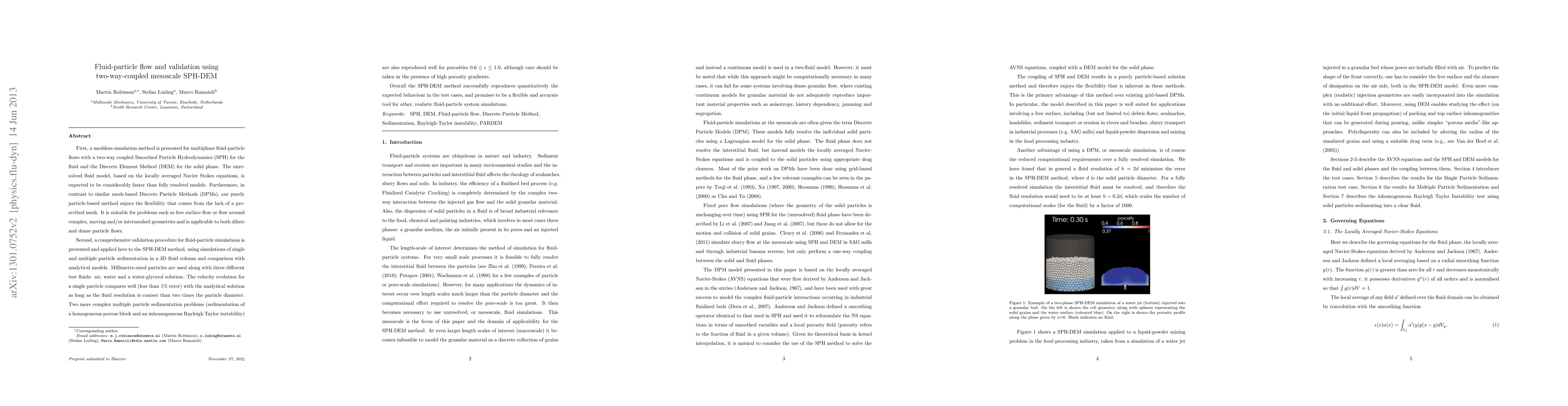 This paper introduces a meshless SPH-DEM method for simulating multiphase fluid-particle flows, demonstrating its flexibility and speed. The method is validated through simulations of particle sedimentation in various fluids, showing accurate results with less than 1% error for single particles and good reproduction of complex multi-particle scenarios.