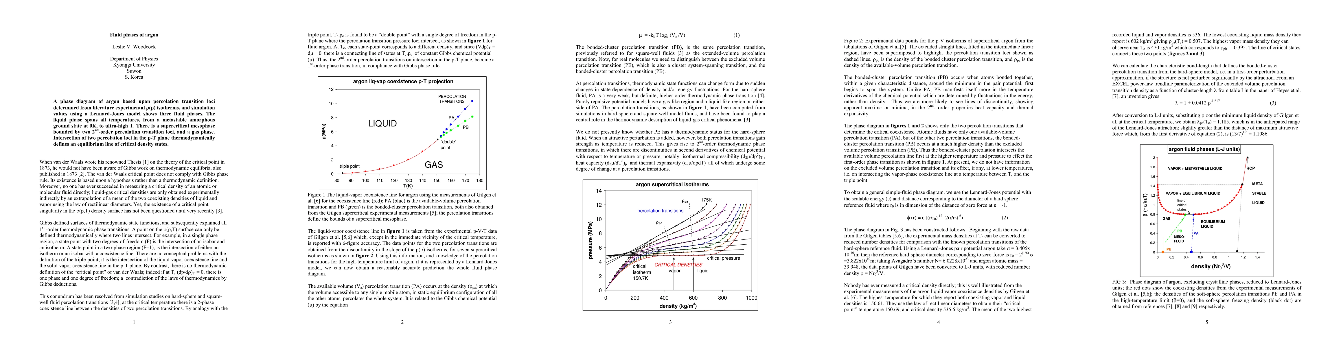 A phase diagram of argon based upon percolation transition loci determined from literature experimental density-pressure isotherms, and simulation values using a Lennard-Jones model shows three fluid phases. The liquid phase spans all temperatures, from a metastable amorphous ground state at 0K, to ultra-high T. There is a supercritical mesophase bounded by two 2nd-order percolation transition loci, and a gas phase. Intersection of two percolation loci in the p-T plane thermodynamically defines an equilibrium line of critical density states.