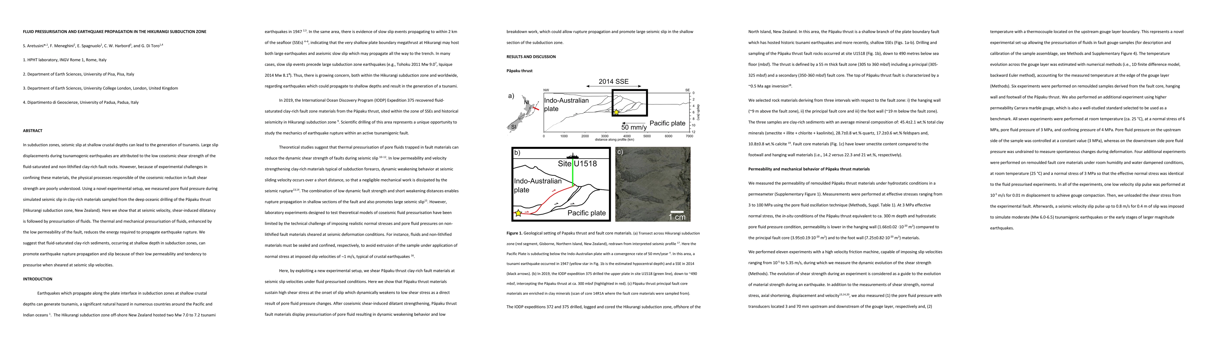 This study investigates how fluid pressurisation in clay-rich fault rocks influences earthquake propagation in the Hikurangi subduction zone. The research demonstrates that shear-induced dilatancy and fluid pressurisation reduce fault shear strength, facilitating earthquake rupture propagation.