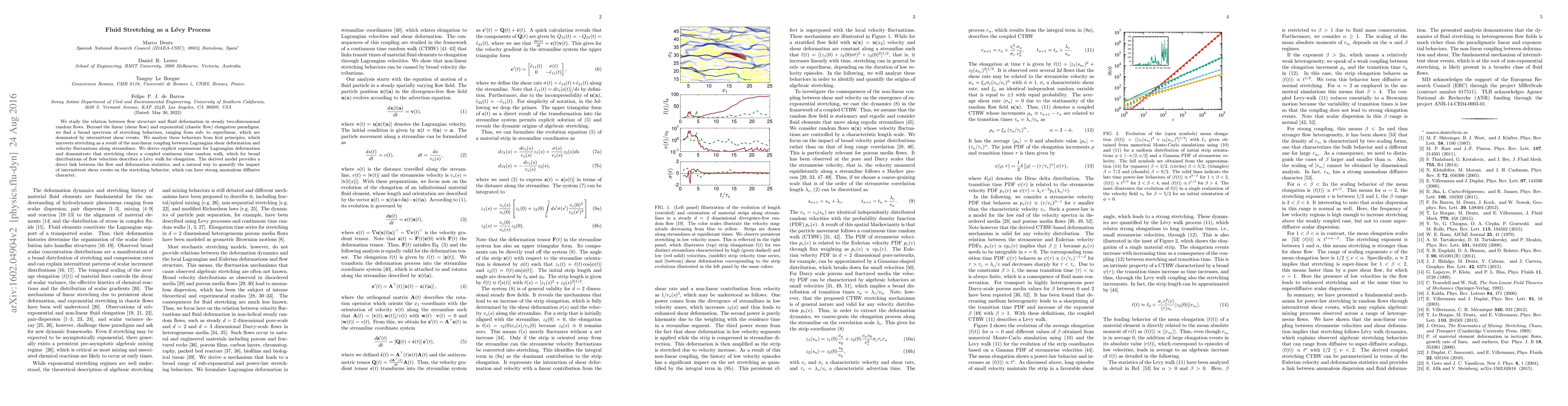 We study the relation between flow structure and fluid deformation in steady two-dimensional random flows. Beyond the linear (shear flow) and exponential (chaotic flow) elongation paradigms, we find a broad spectrum of stretching behaviors, ranging from sub- to superlinear, which are dominated by intermittent shear events. We analyze these behaviors from first principles, which uncovers stretching as a result of the non-linear coupling between Lagrangian shear deformation and velocity fluctuations along streamlines. We derive explicit expressions for Lagrangian deformation and demonstrate that stretching obeys a coupled continous time random walk, which for broad distributions of flow velocities describes a L\'evy walk for elongation. The derived model provides a direct link between the flow and deformation statistics, and a natural way to quantify the impact of intermittent shear events on the stretching behavior, which can have strong anomalous diffusive character.