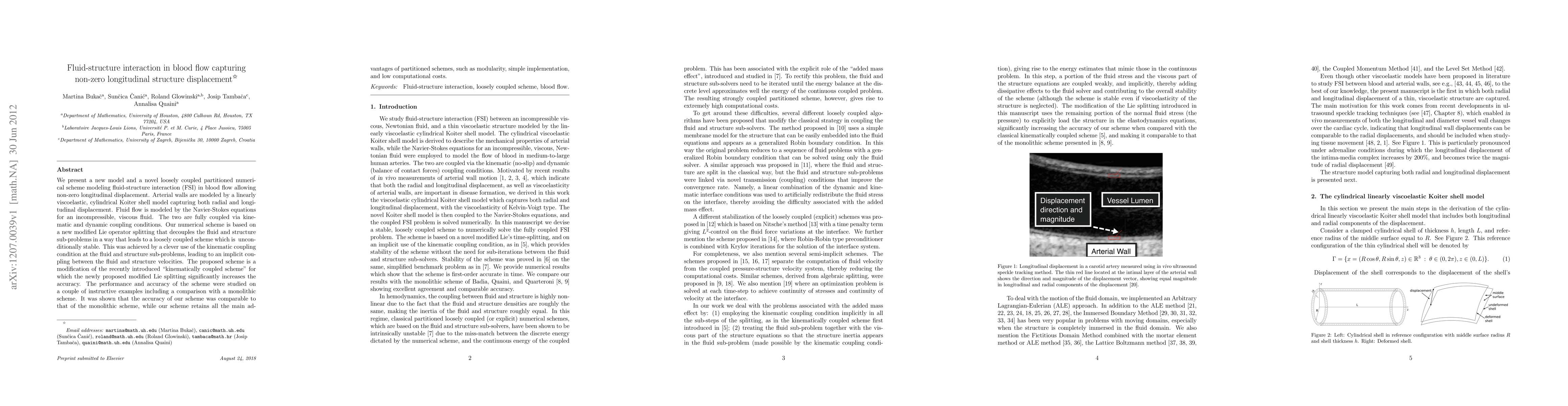 This paper presents a new loosely coupled partitioned numerical scheme for modeling fluid-structure interaction in blood flow, allowing for non-zero longitudinal displacement of arterial walls. The scheme uses a modified Lie operator splitting to achieve unconditional stability and accuracy comparable to monolithic schemes.