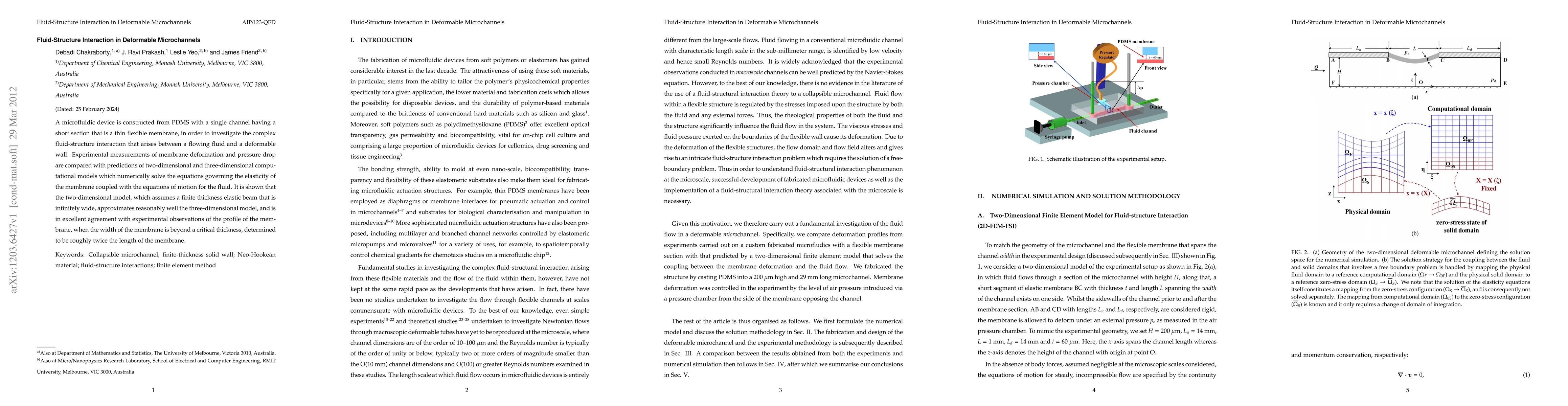 Researchers created a microfluidic device with a flexible membrane to study fluid-structure interaction, finding that a 2D model approximates the 3D model for certain conditions, and can accurately predict membrane deformation and pressure drop.