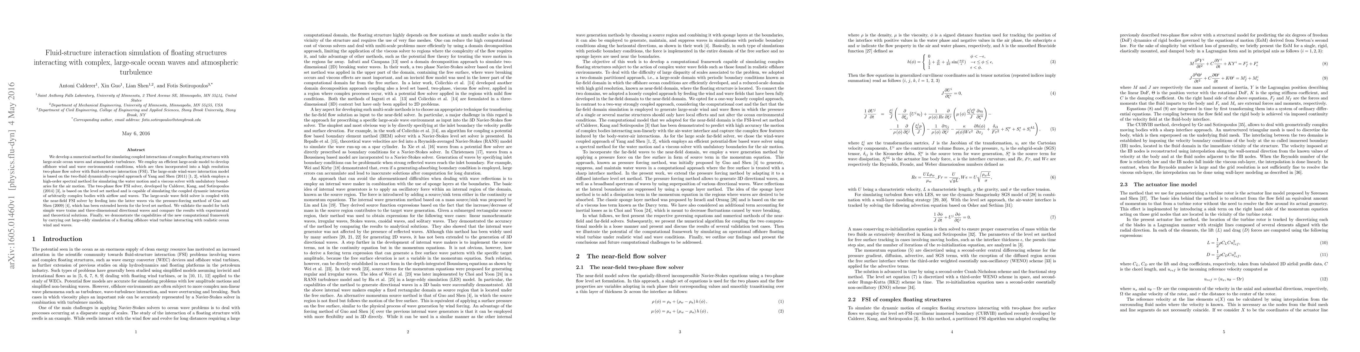 This paper presents a numerical method for simulating the fluid-structure interaction of floating structures with large-scale ocean waves and atmospheric turbulence. The method combines a large-scale wind-wave interaction model with a high-resolution two-phase flow solver, validated through comparisons with experimental data and applied to simulate a floating offshore wind turbine.