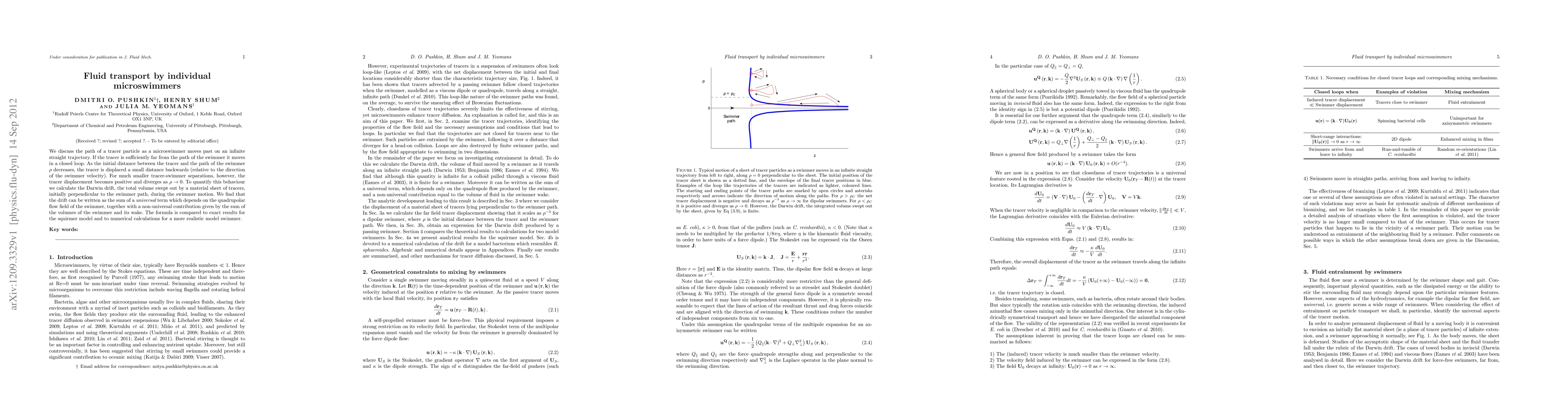We discuss the path of a tracer particle as a microswimmer moves past on an infinite straight trajectory. If the tracer is sufficiently far from the path of the swimmer it moves in a closed loop. As the initial distance between the tracer and the path of the swimmer $\rho$ decreases, the tracer is displaced a small distance backwards (relative to the direction of the swimmer velocity). For much smaller tracer-swimmer separations, however, the tracer displacement becomes positive and diverges as $\rho \to 0$. To quantify this behaviour we calculate the Darwin drift, the total volume swept out by a material sheet of tracers, initially perpendicular to the swimmer path, during the swimmer motion. We find that the drift can be written as the sum of a {\em universal} term which depends on the quadrupolar flow field of the swimmer, together with a non-universal contribution given by the sum of the volumes of the swimmer and its wake. The formula is compared to exact results for the squirmer model and to numerical calculations for a more realistic model swimmer.