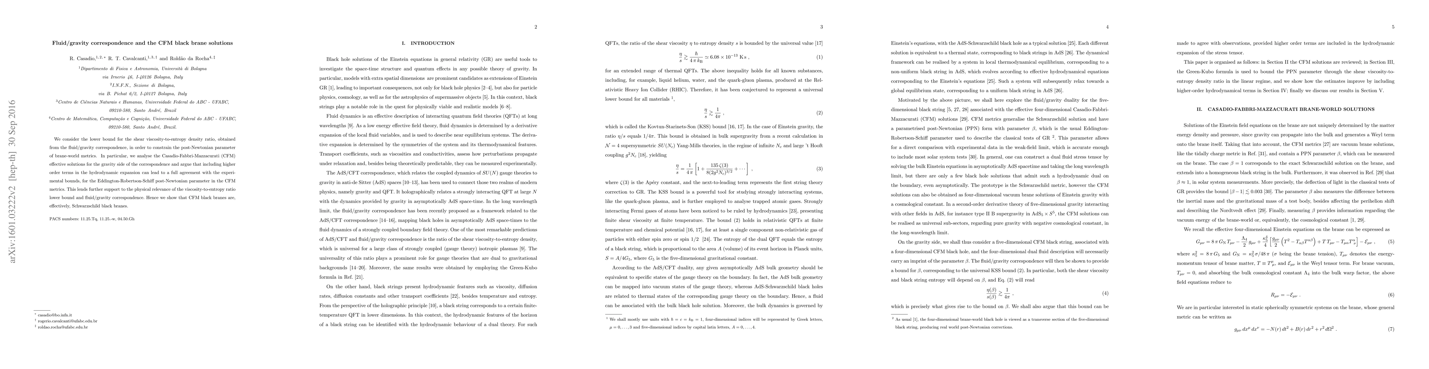 We consider the lower bound for the shear viscosity-to-entropy density ratio, obtained from the fluid/gravity correspondence, in order to constrain the post-Newtonian parameter of brane-world metrics. In particular, we analyse the Casadio-Fabbri-Mazzacurati (CFM) effective solutions for the gravity side of the correspondence and argue that including higher order terms in the hydrodynamic expansion can lead to a full agreement with the experimental bounds, for the Eddington-Robertson-Schiff post-Newtonian parameter in the CFM metrics. This lends further support to the physical relevance of the viscosity-to-entropy ratio lower bound and fluid/gravity correspondence. Hence we show that CFM black branes are, effectively, Schwarzschild black branes.