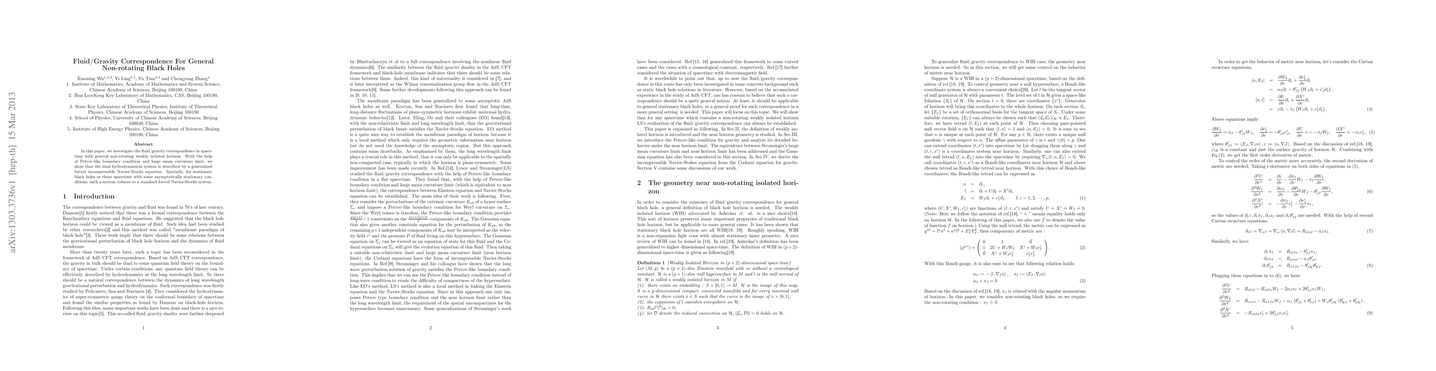 In this paper, we investigate the fluid/gravity correspondence in spacetime with general non-rotating weakly isolated horizon. With the help of Petrov-like boundary condition and large mean curvature limit, we show that the dual hydrodynamical system is described by a generalized forced incompressible Navier-Stocks equation. Specially, for stationary black holes or those spacetime with some asymptotically stationary conditions, such a system reduces to a standard forced Navier-Stocks system.