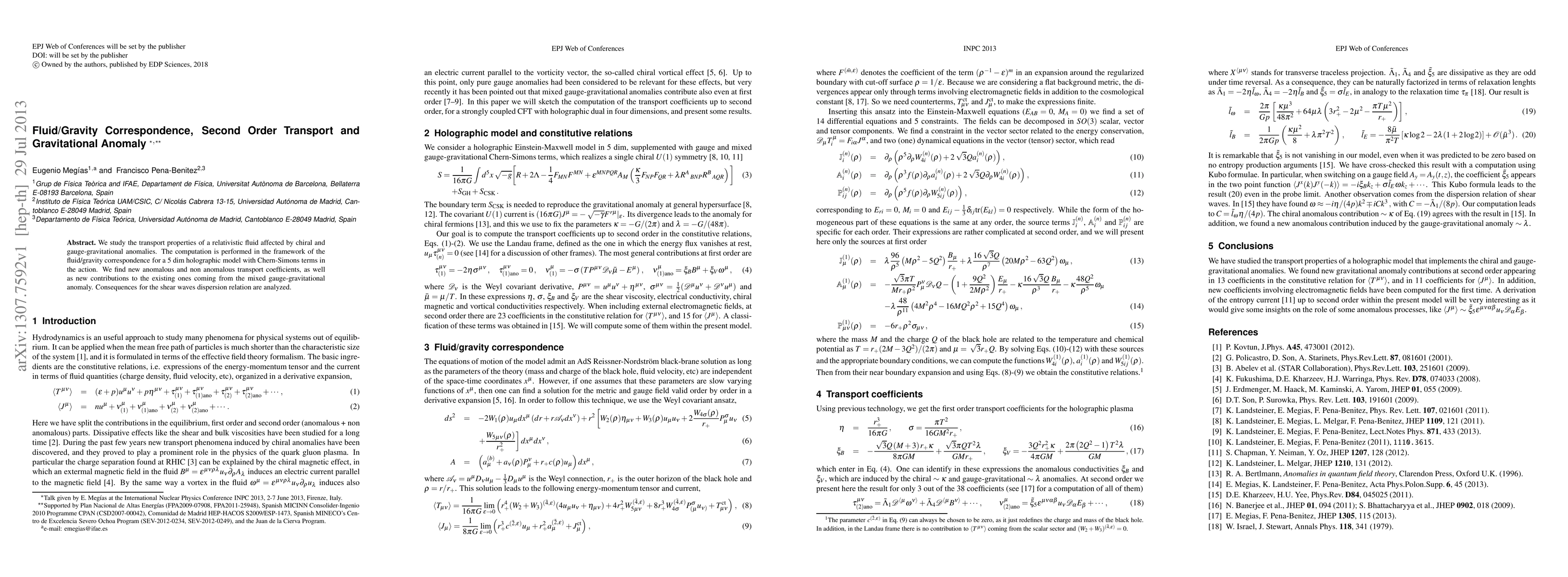 This paper investigates the transport properties of a relativistic fluid with chiral and gauge-gravitational anomalies using the fluid/gravity correspondence in a 5-dimensional holographic model. It identifies new transport coefficients and contributions from mixed anomalies, analyzing their implications for the shear wave dispersion relation.