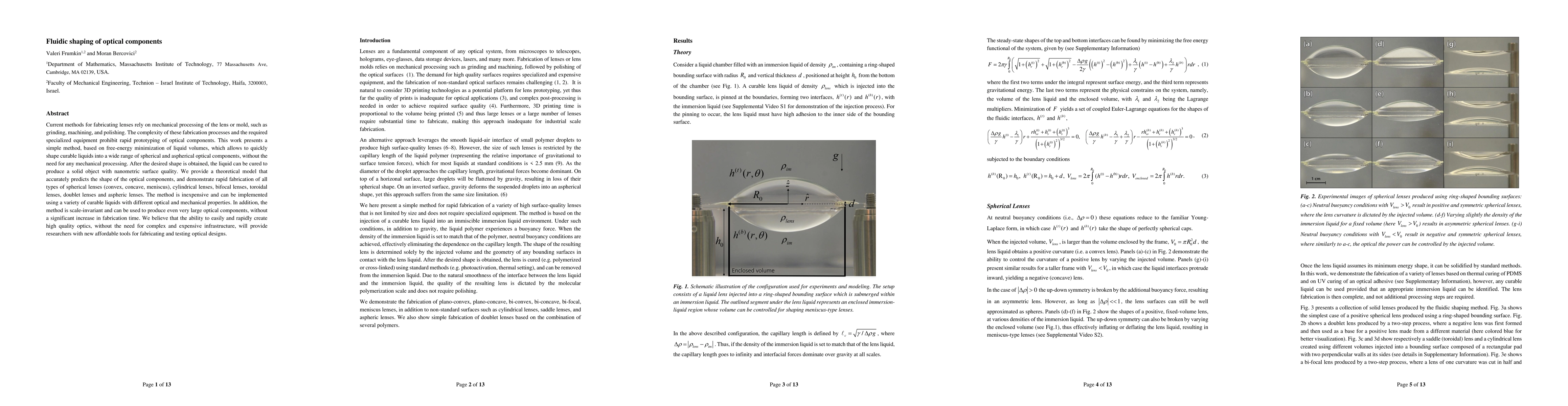 Current methods for fabricating lenses rely on mechanical processing of the lens or mold, such as grinding, machining, and polishing. The complexity of these fabrication processes and the required specialized equipment prohibit rapid prototyping of optical components. This work presents a simple method, based on free-energy minimization of liquid volumes, which allows to quickly shape curable liquids into a wide range of spherical and aspherical optical components, without the need for any mechanical processing. After the desired shape is obtained, the liquid can be cured to produce a solid object with nanometric surface quality. We provide a theoretical model that accurately predicts the shape of the optical components, and demonstrate rapid fabrication of all types of spherical lenses (convex, concave, meniscus), cylindrical lenses, bifocal lenses, toroidal lenses, doublet lenses and aspheric lenses. The method is inexpensive and can be implemented using a variety of curable liquids with different optical and mechanical properties. In addition, the method is scale-invariant and can be used to produce even very large optical components, without a significant increase in fabrication time. We believe that the ability to easily and rapidly create high-quality optics, without the need for complex and expensive infrastructure, will provide researchers with new affordable tools for fabricating and testing optical designs.