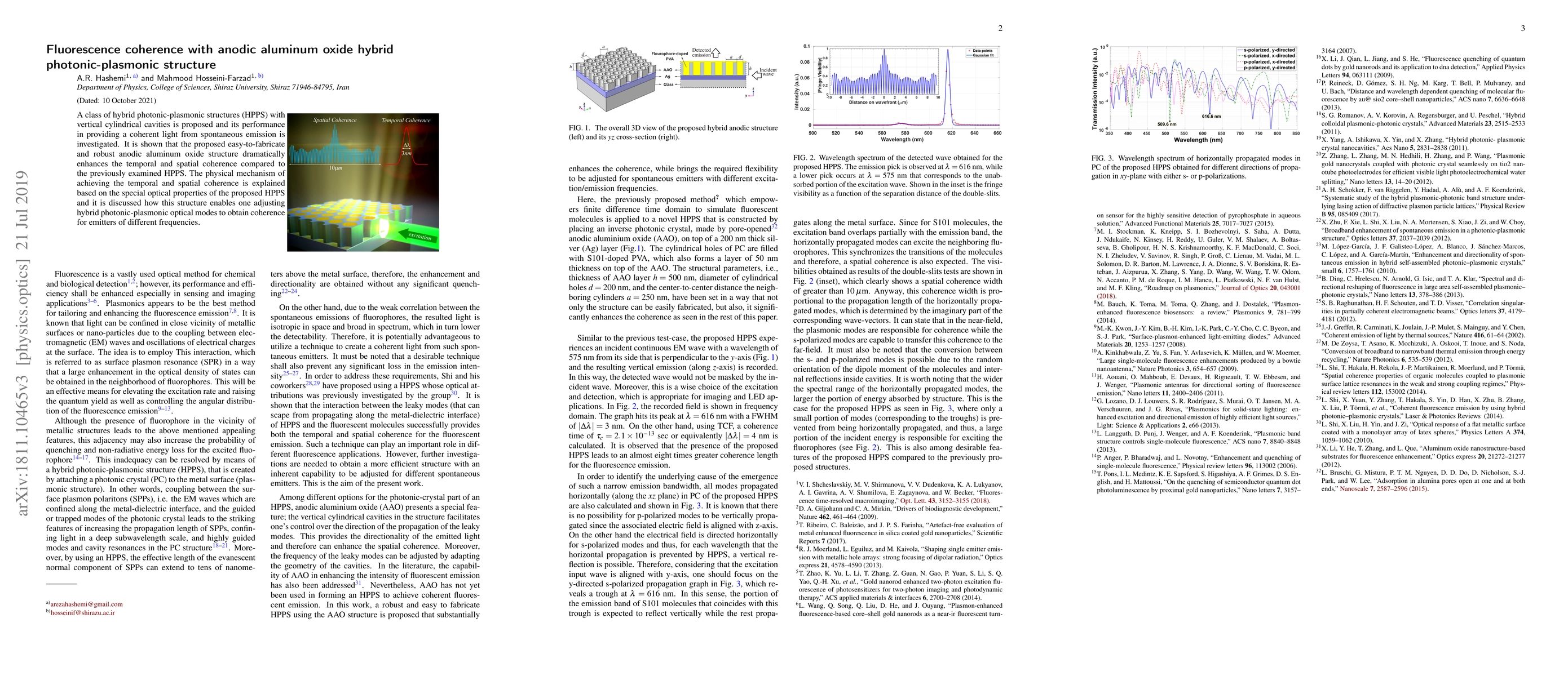 This paper proposes a hybrid photonic-plasmonic structure with vertical cylindrical cavities that significantly enhances temporal and spatial coherence from spontaneous emission. The robust anodic aluminum oxide design facilitates this coherence, enabling adjustable optical modes for various emitter frequencies.