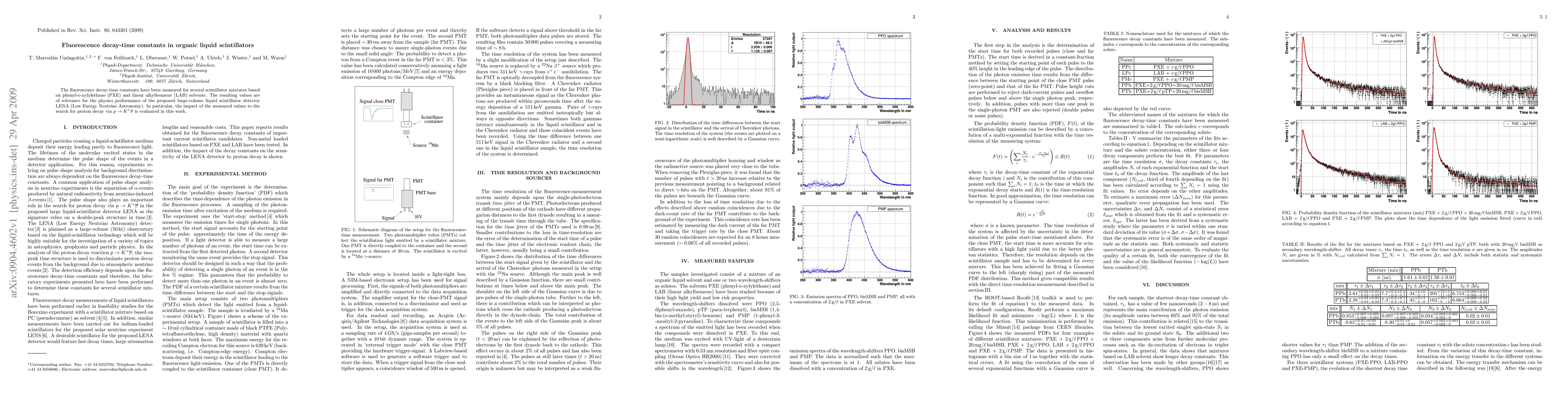 The fluorescence decay-time constants have been measured for several scintillator mixtures based on phenyl-o-xylylethane (PXE) and linear alkylbenzene (LAB) solvents. The resulting values are of relevance for the physics performance of the proposed large-volume liquid scintillator detector LENA (Low Energy Neutrino Astronomy). In particular, the impact of the measured values to the search for proton decay via p -> K+ antineutrino is evaluated in this work.