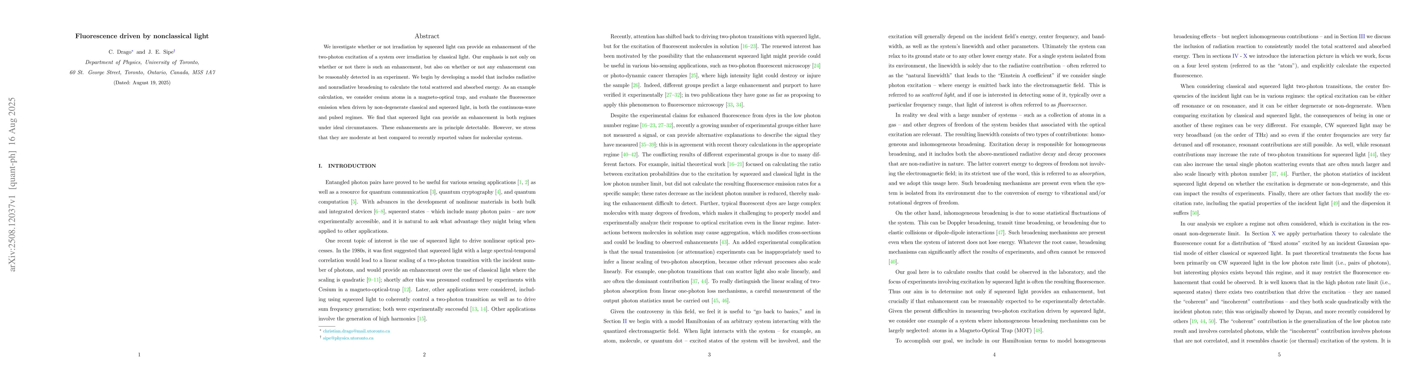We investigate whether or not irradiation by squeezed light can provide an enhancement of the two-photon excitation of a system over irradiation by classical light. Our emphasis is not only on whether or not there is such an enhancement, but also on whether or not any enhancement can be reasonably detected in an experiment. We begin by developing a model that includes radiative and nonradiative broadening to calculate the total scattered and absorbed energy. As an example calculation, we consider cesium atoms in a magneto-optical trap, and evaluate the fluorescence emission when driven by non-degenerate classical and squeezed light, in both the continuous-wave and pulsed regimes. We find that squeezed light can provide an enhancement in both regimes under ideal circumstances. These enhancements are in principle detectable. However, we stress that they are moderate at best compared to recently reported values for molecular systems.