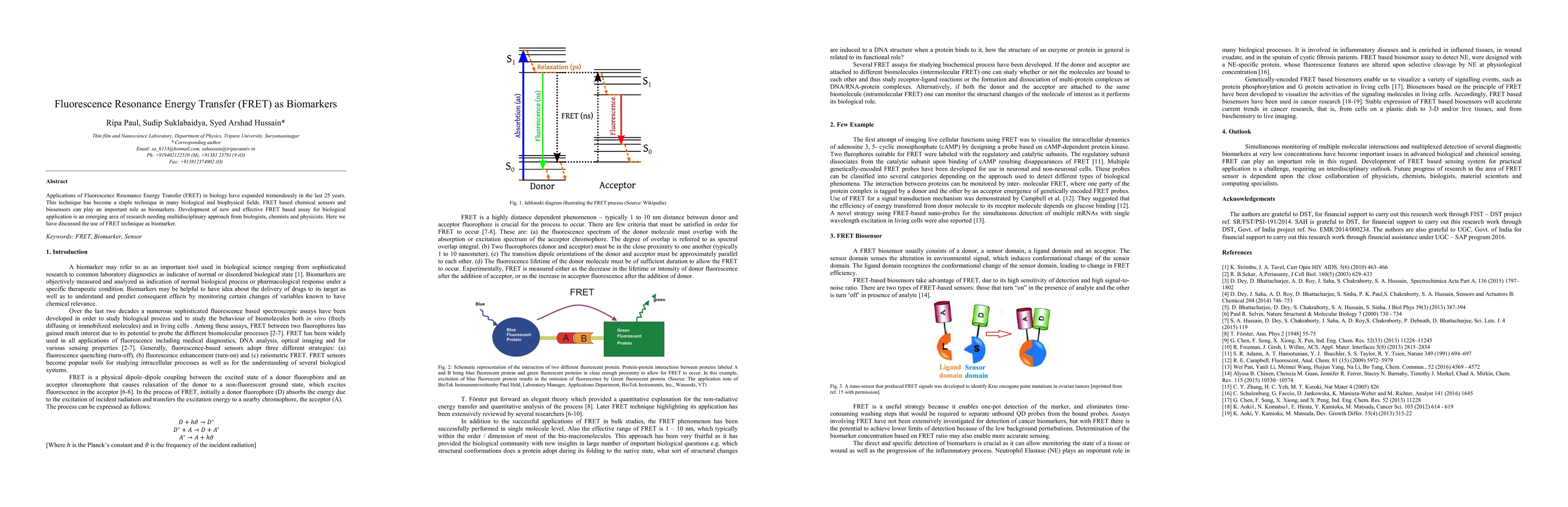 Summary: This paper explores the expanding applications of Fluorescence Resonance Energy Transfer (FRET) in biology, emphasizing its role as a powerful tool in developing chemical and biosensors that serve as biomarkers, and highlights the need for a multidisciplinary approach to advance FRET-based assays.