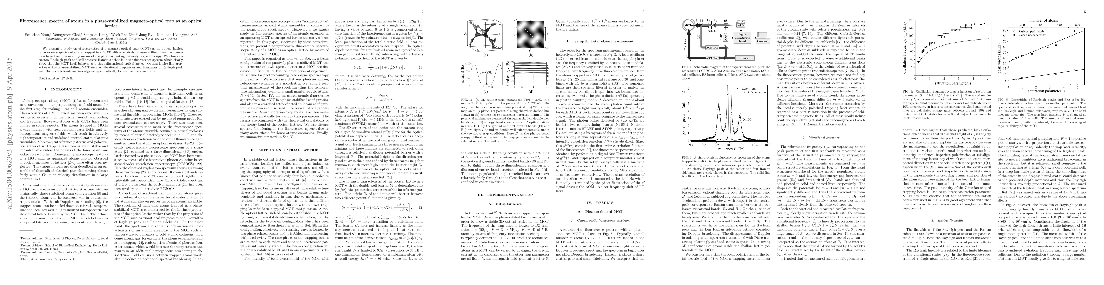 This study investigates the fluorescence spectra of atoms in a phase-stabilized magneto-optical trap functioning as an optical lattice, revealing a narrow Rayleigh peak and Raman sidebands via photon-counting heterodyne spectroscopy. Systematic analysis of the trap's vibrational frequencies and spectral lineshapes under different conditions confirms its optical-lattice-like properties.