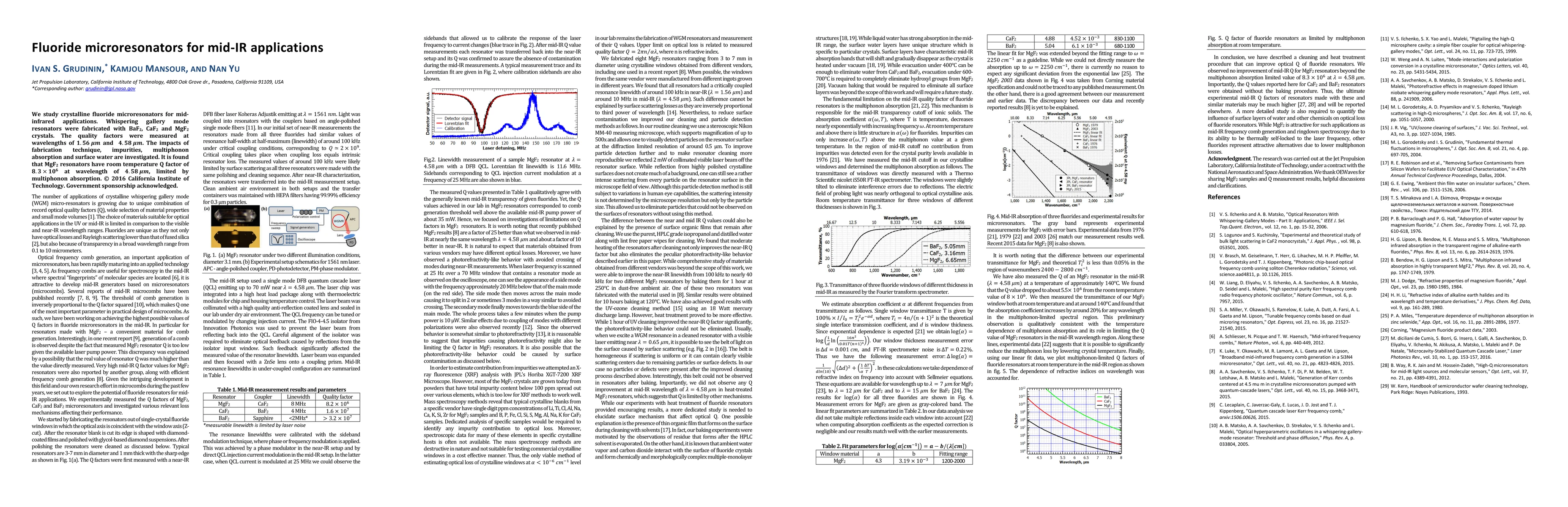 We study crystalline fluoride microresonators for mid-infrared applications. Whispering gallery mode resonators were fabricated with BaF$_2$, CaF$_2$ and MgF$_2$ crystals. The quality factors were measured at wavelengths of 1.56 {\mu}m and 4.58 {\mu}m. The impacts of fabrication technique, impurities, multiphonon absorption and surface water are investigated. It is found that MgF2 resonators have room temperature Q factor of $8.3\times 10^6$ at wavelength of 4.58 {\mu}m, limited by multiphonon absorption.