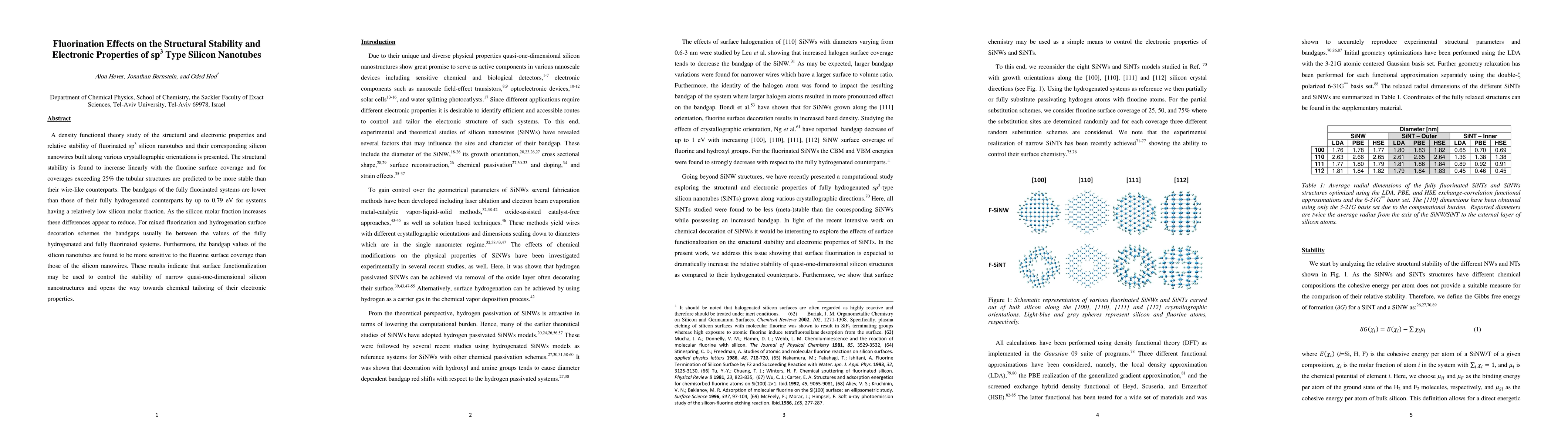 This paper uses density functional theory to analyze how fluorination affects the structural stability and electronic properties of sp3 silicon nanotubes, finding that increased fluorine coverage enhances stability and lowers bandgaps, especially in low silicon molar fraction systems. Mixed fluorination and hydrogenation result in intermediate bandgaps.