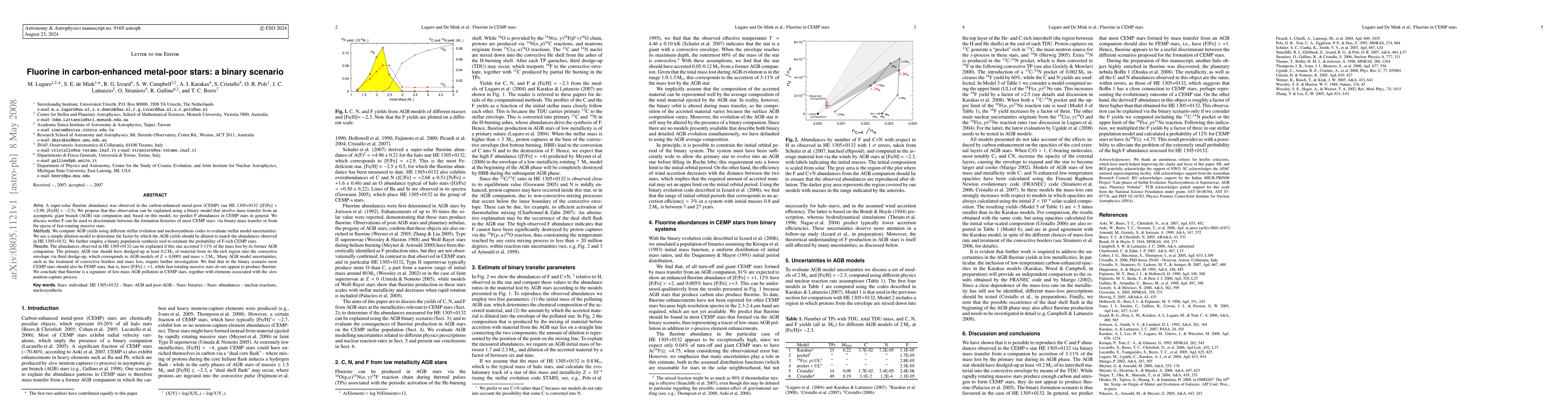 This paper proposes a binary model to explain the super-solar fluorine abundance in the CEMP star HE 1305+0132, suggesting that mass transfer from an AGB star companion can account for the observed fluorine. The study concludes that fluorine is a signature of low-mass AGB pollution in CEMP stars, distinguishing them from those formed via fast-rotating massive stars.